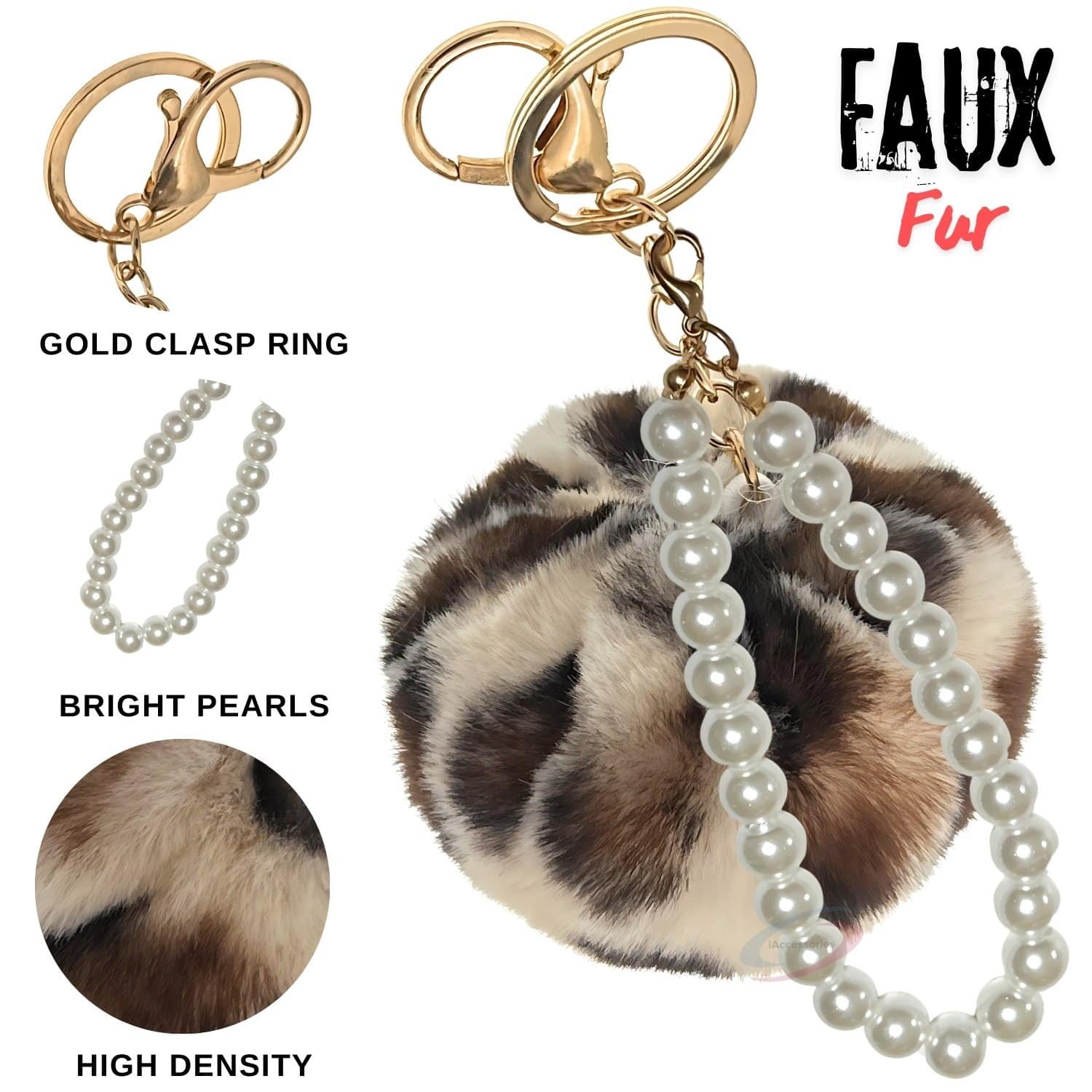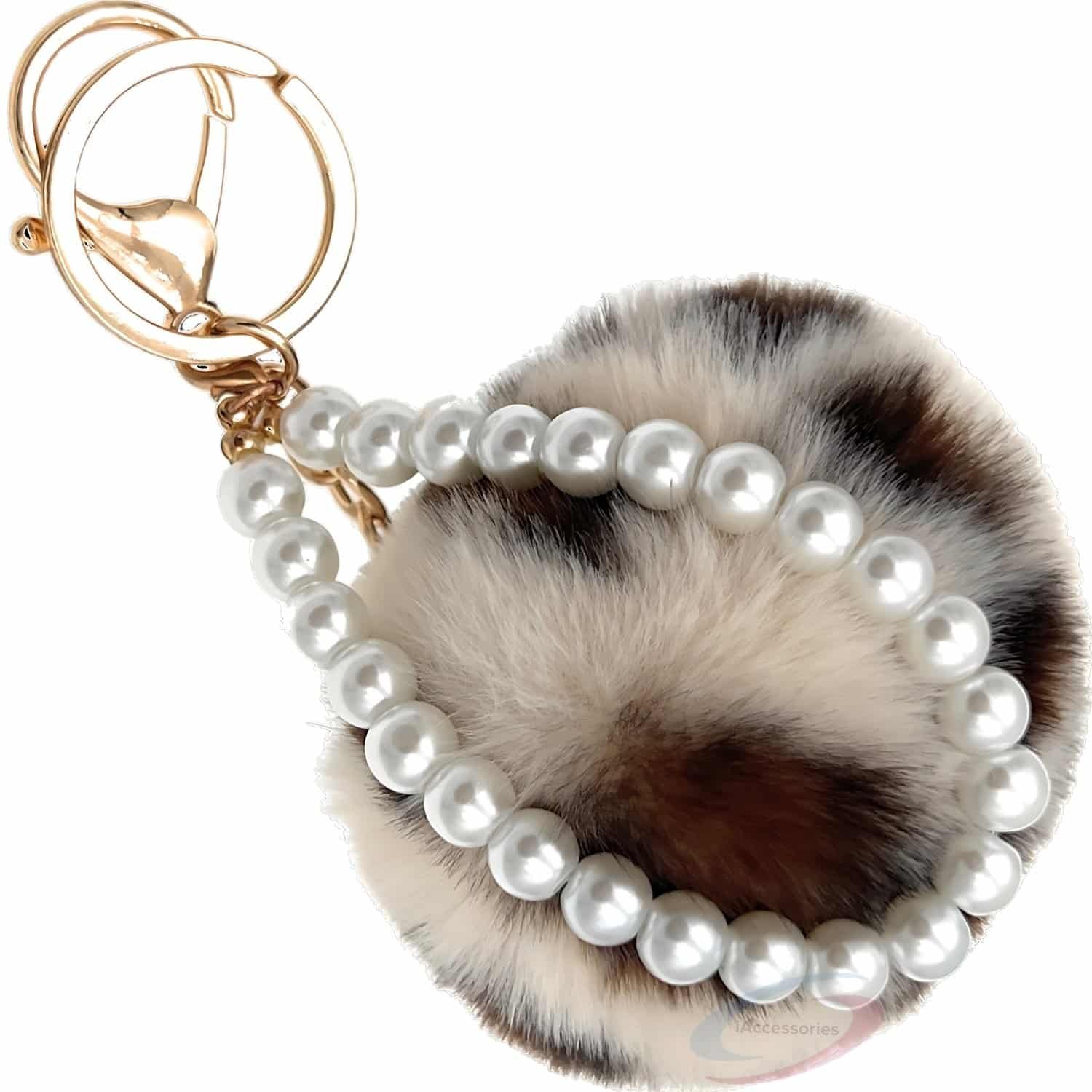 iAccessories Faux Fur Pom Pom Keychain with Pearls