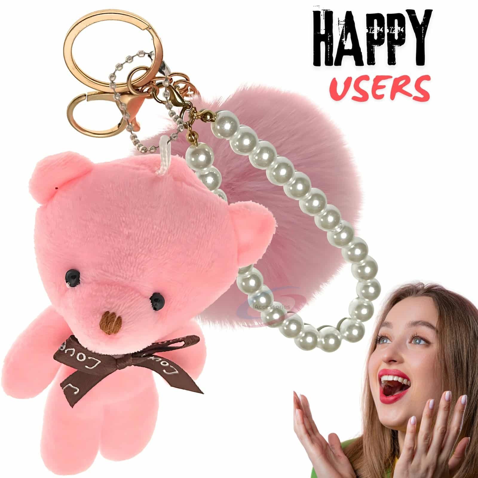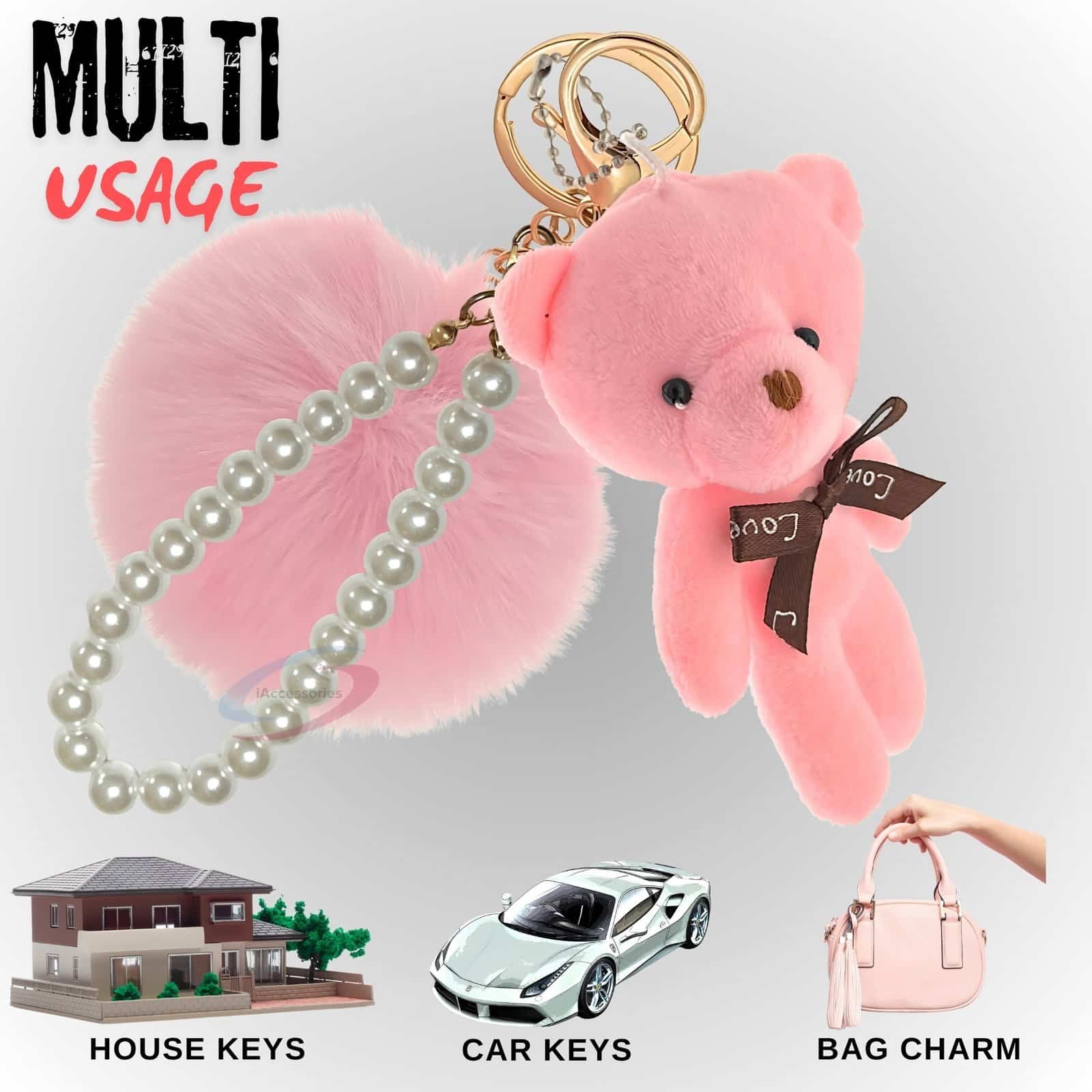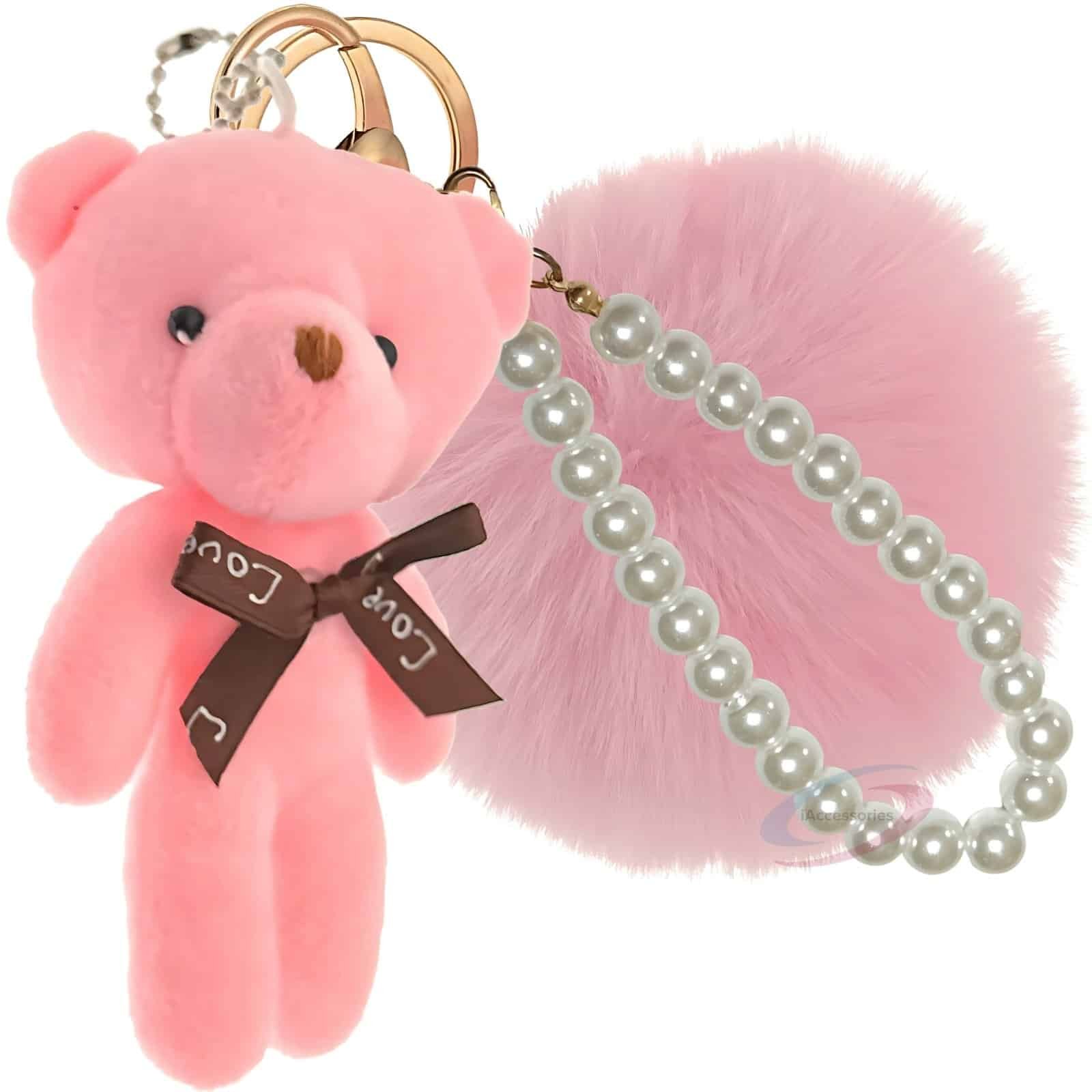 iAccessories Fluffy Teddy Bear Keychain with Pearls