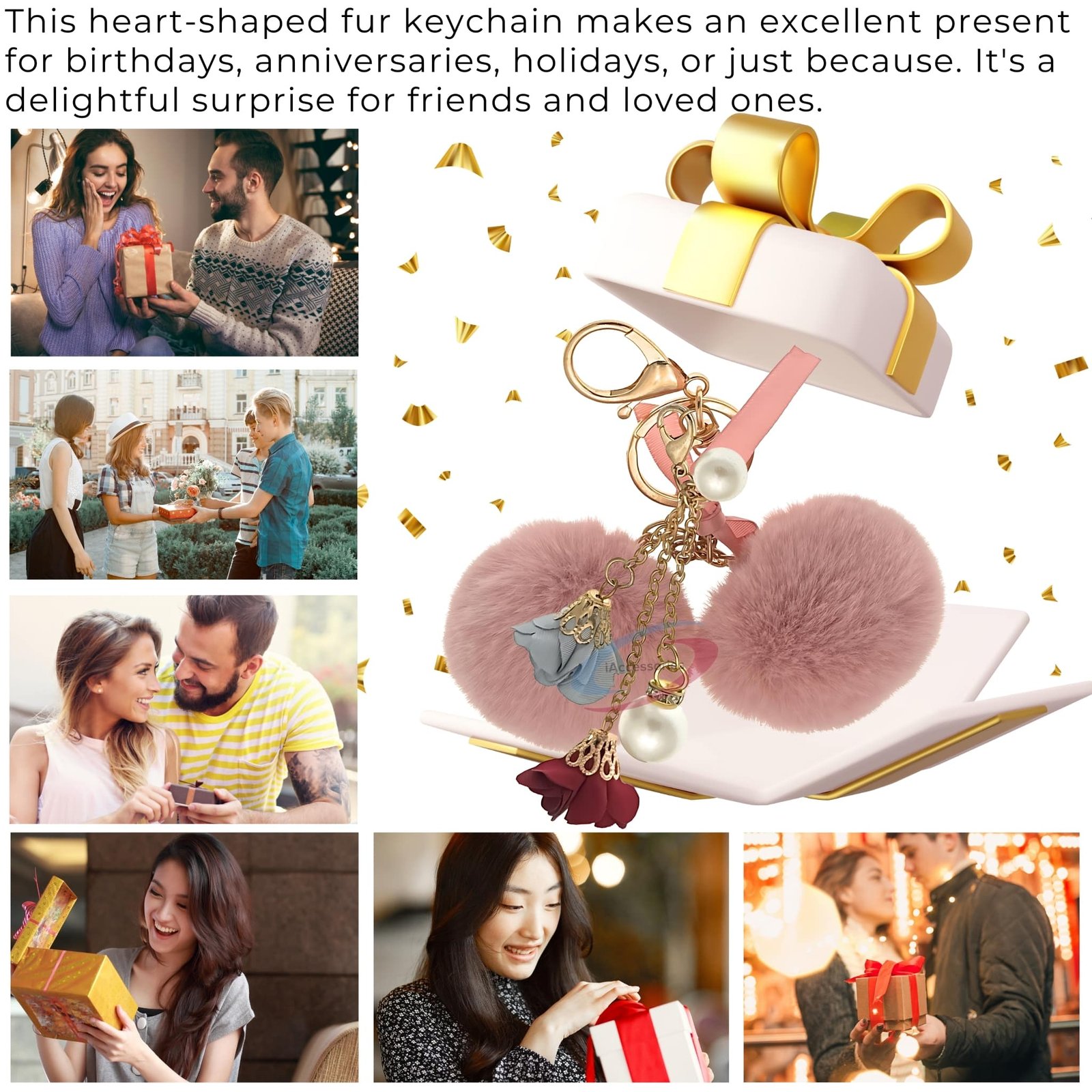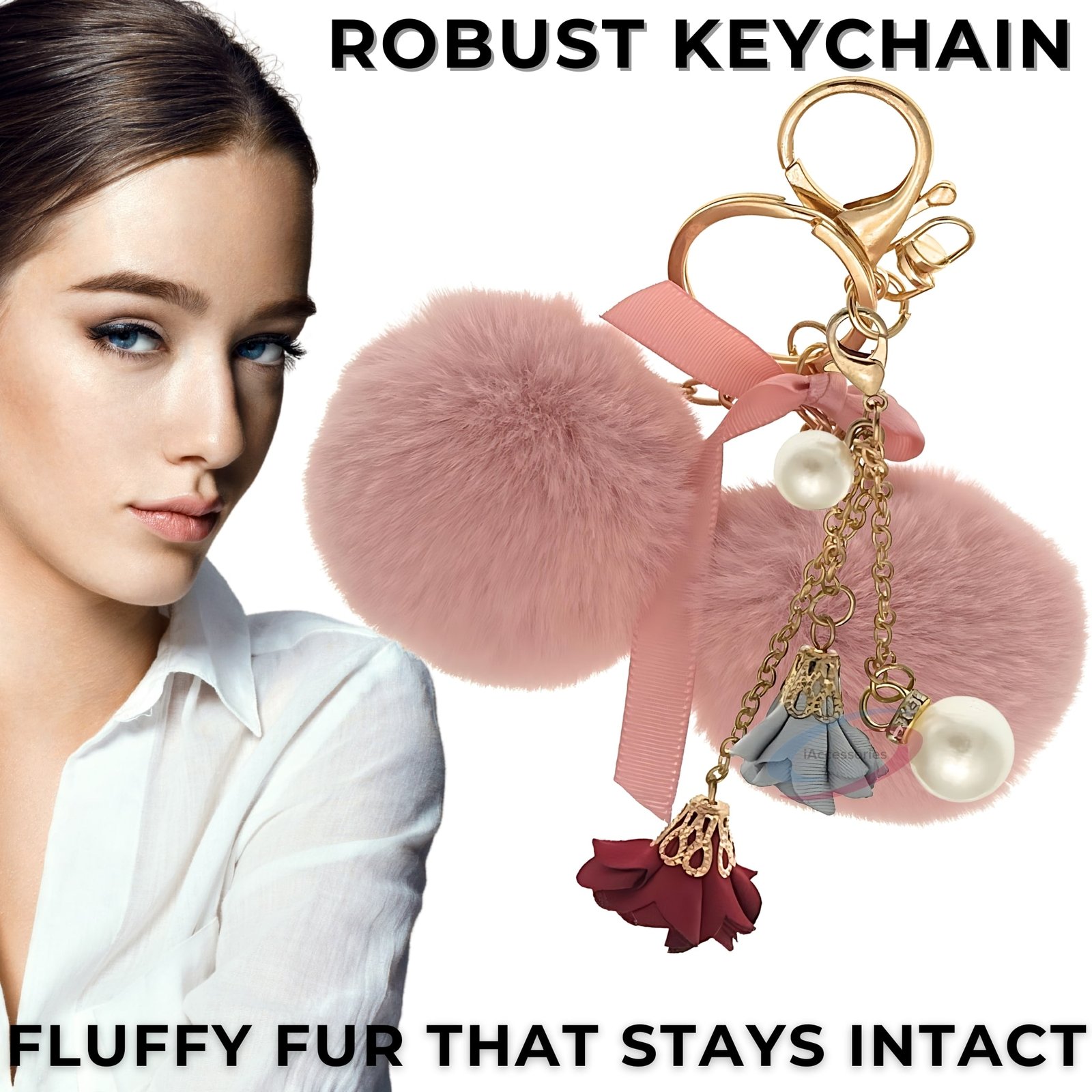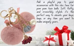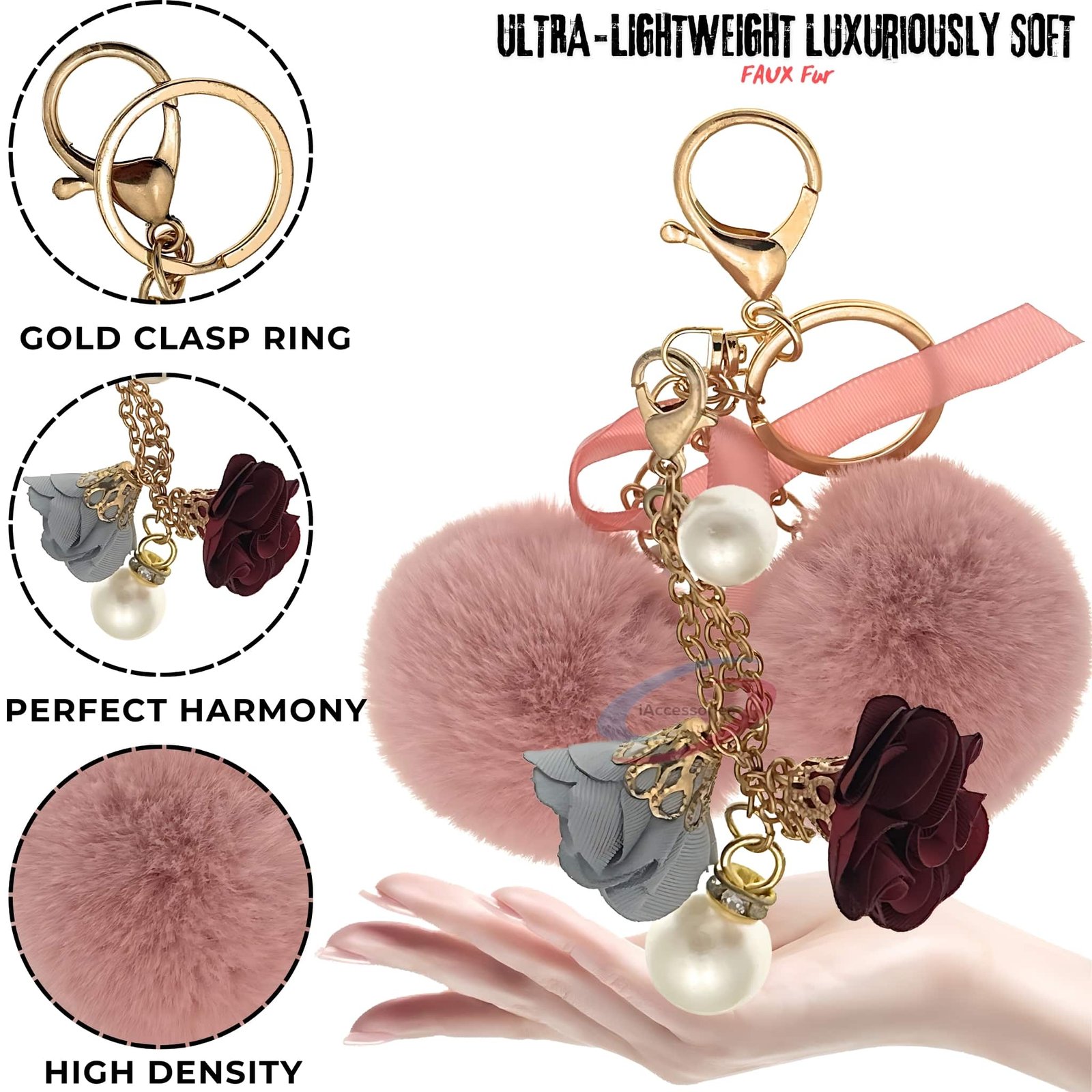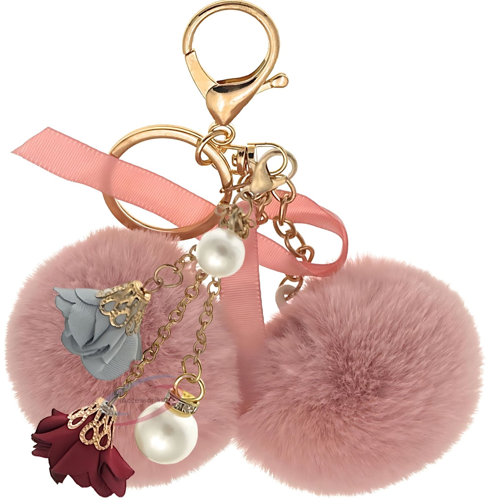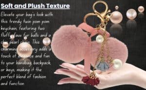 Baby Pink Twin Pom Pom Keychain – iAccessories Faux Fur Rose & Pearl Bag Charm for Girls