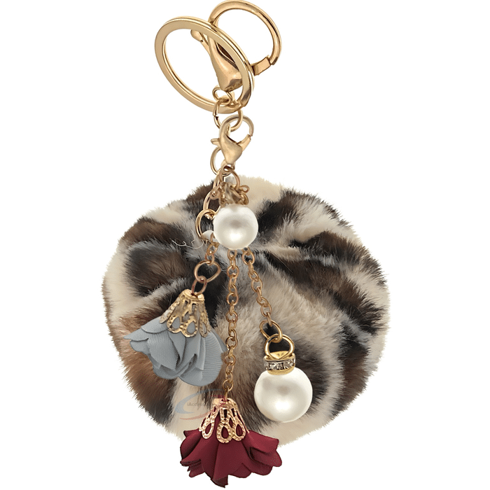 iAccessories Faux Fur Pom Pom Ball with Twin Roses & Pearls