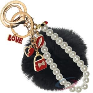 Upgrade your accessories with the iAccessories Fluffy Faux Fur Pearl Fashion Pom Pom Keychain Charm – Black. The luxurious black faux fur combined with a classic pearl pendant makes this a perfect accessory for daily use, gifting, and showcasing your chic style.