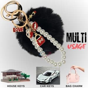 Black Fluffy Faux Fur Heart Pom Pom Keychain with Pearl – iAccessories Stylish Bag Charm for Girls