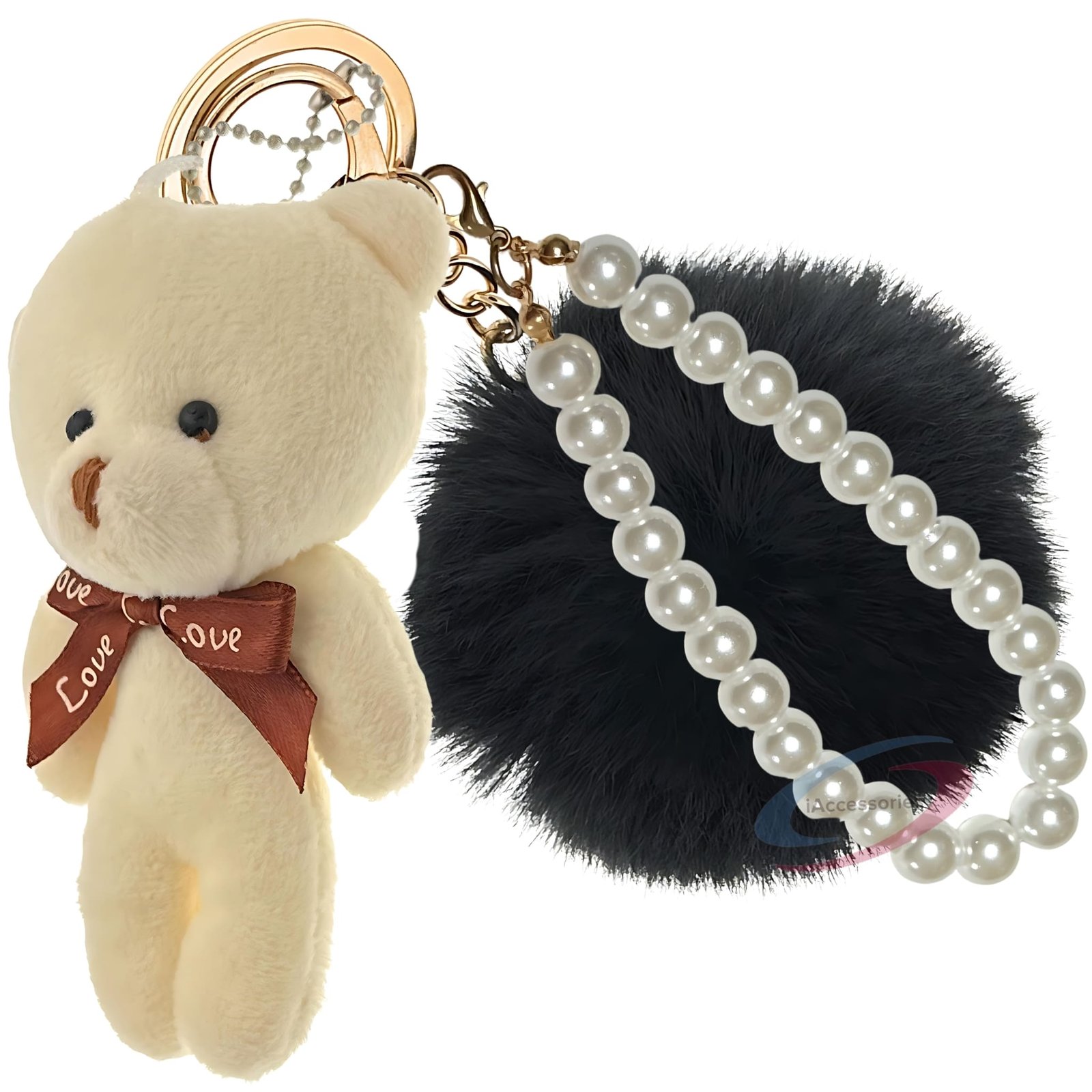 Black & White Teddy Faux Fur Pom Pom Key Ring – iAccessories Pearl Bag Charm for Girls