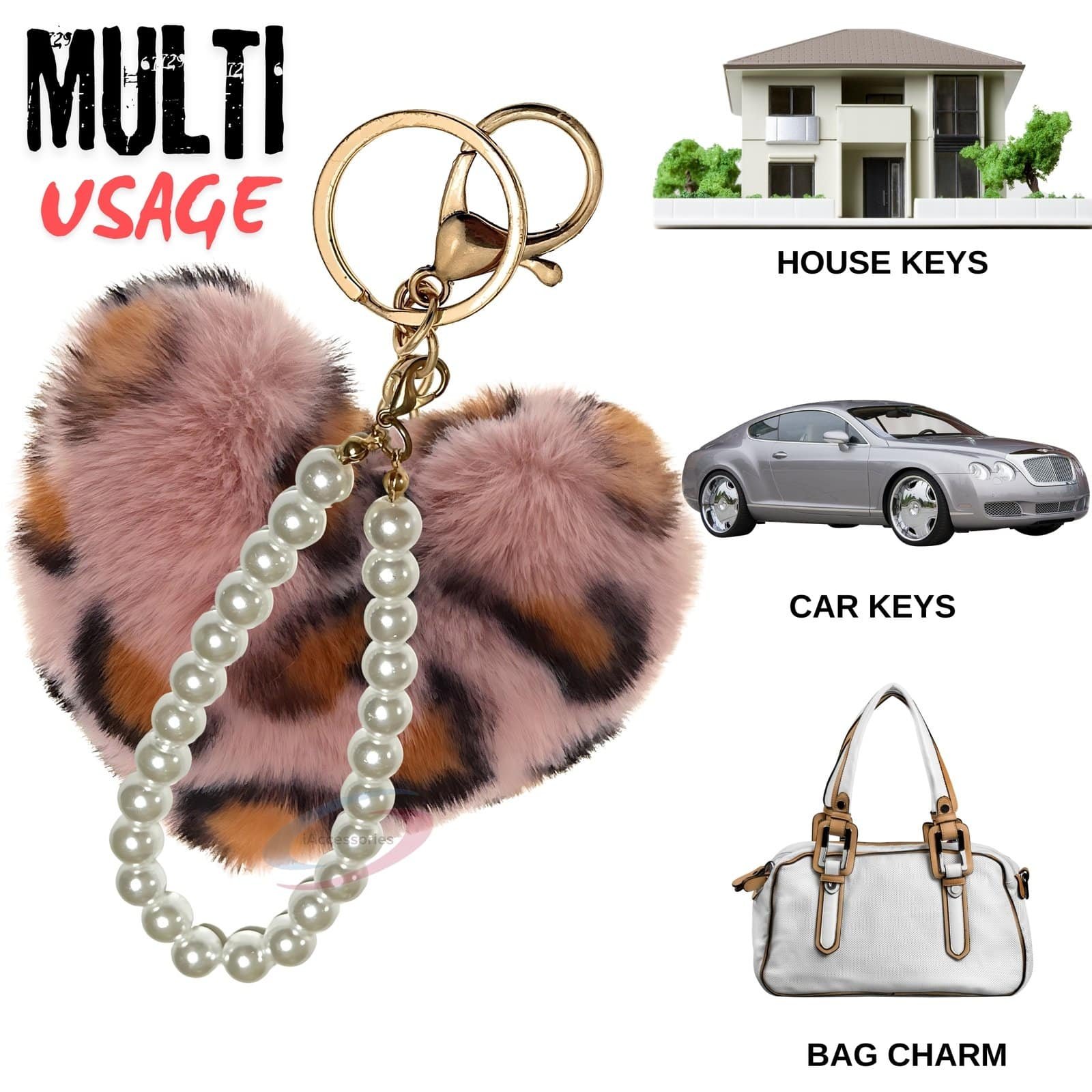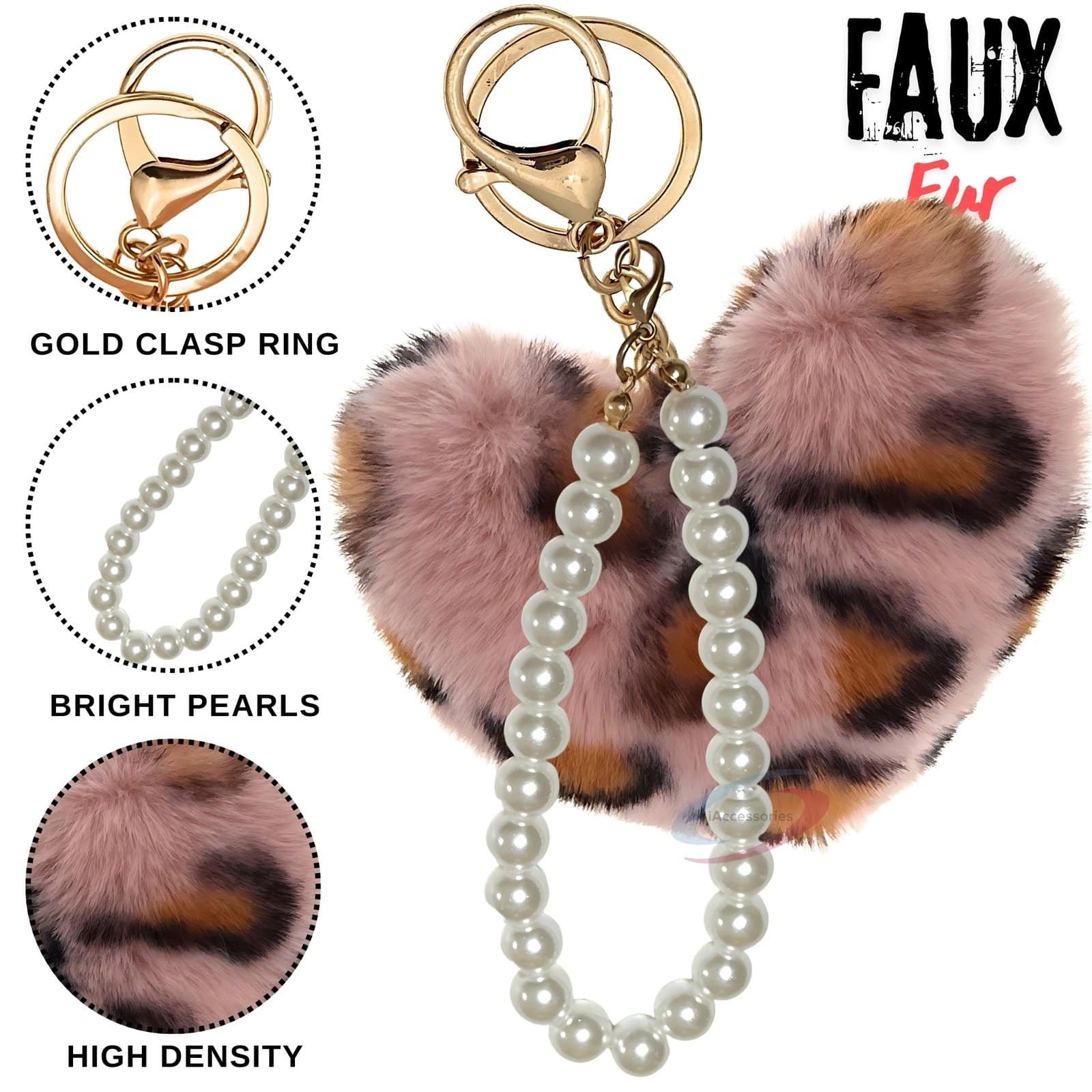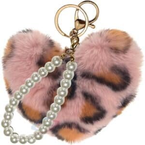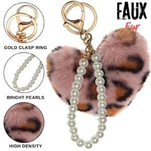iAccessories Fluffy Faux Fur Heart Keychain with Pearls
