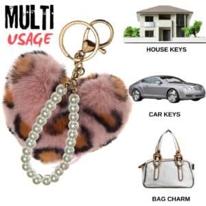 This is more than just a keychain; it's a luxurious statement piece. Crafted with **ultra-soft faux fur** in a charming Pink Lepo hue and complemented by a chic **pearls pendant**, it’s the perfect blend of high fashion and everyday function. Ideal for accessorizing your bags, purses, wallets, cars, bikes, scooty, and home keys.