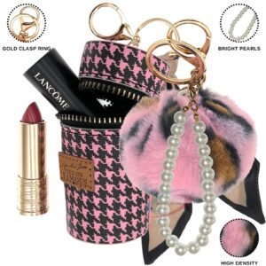 Enhance your bags, keys, and vehicles with this fashionable faux fur pom pom keychain in the **Pink Black Pink Lepo** color, instantly making a bold statement.
