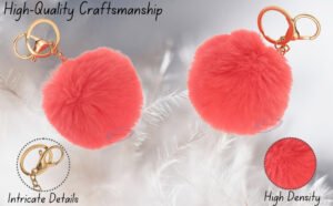 Brighten your everyday look with the adorable iAccessories Fluffy Faux Fur Pom Pom Ball Key Ring – Coral.