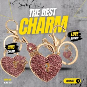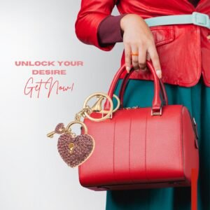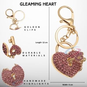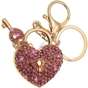 This beautifully crafted keychain features a glittering heart lock pendant adorned with sparkling rhinestones. Its unique design adds instant charm and personality to any bag, purse, or key set, making it an exquisite statement piece.