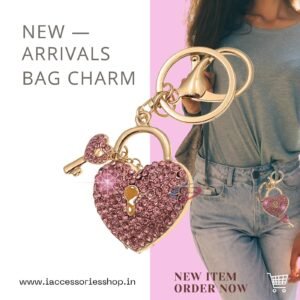 The **iAccessories Bling Crystal Heart Lock Key Ring – Pink** adds romantic charm and sparkling elegance to your everyday accessories.