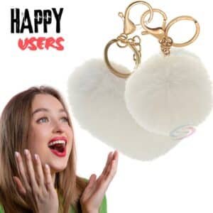 Heartfelt Pom Pom Design on the White Keychain