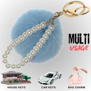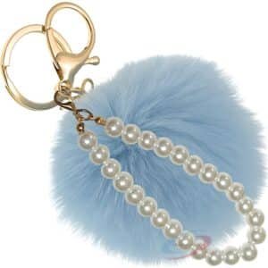 Enhance your style with the **iAccessories Faux Fur Pompom with Pearls Keychain Charm** in elegant Light Blue.