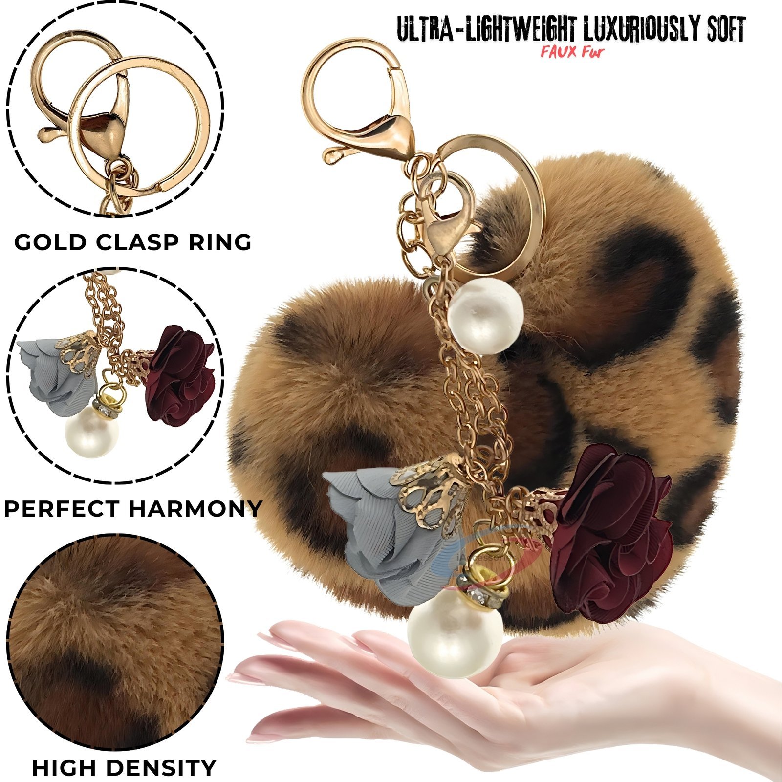 Add a touch of **elegance and fun** to your everyday essentials with the **iAccessories Fluffy Faux Fur Pearl Roses Pom Pom Heart Keychain Charm**.