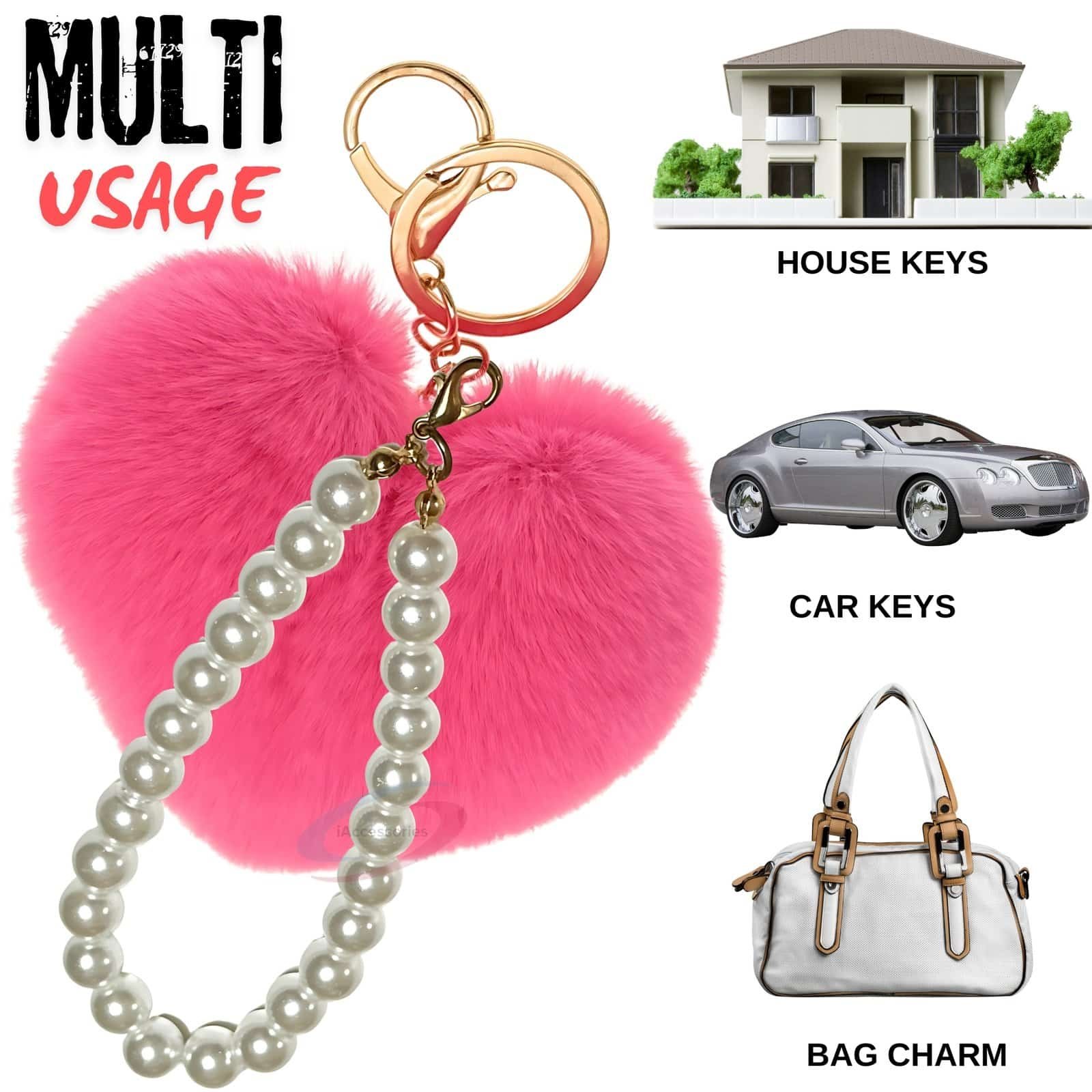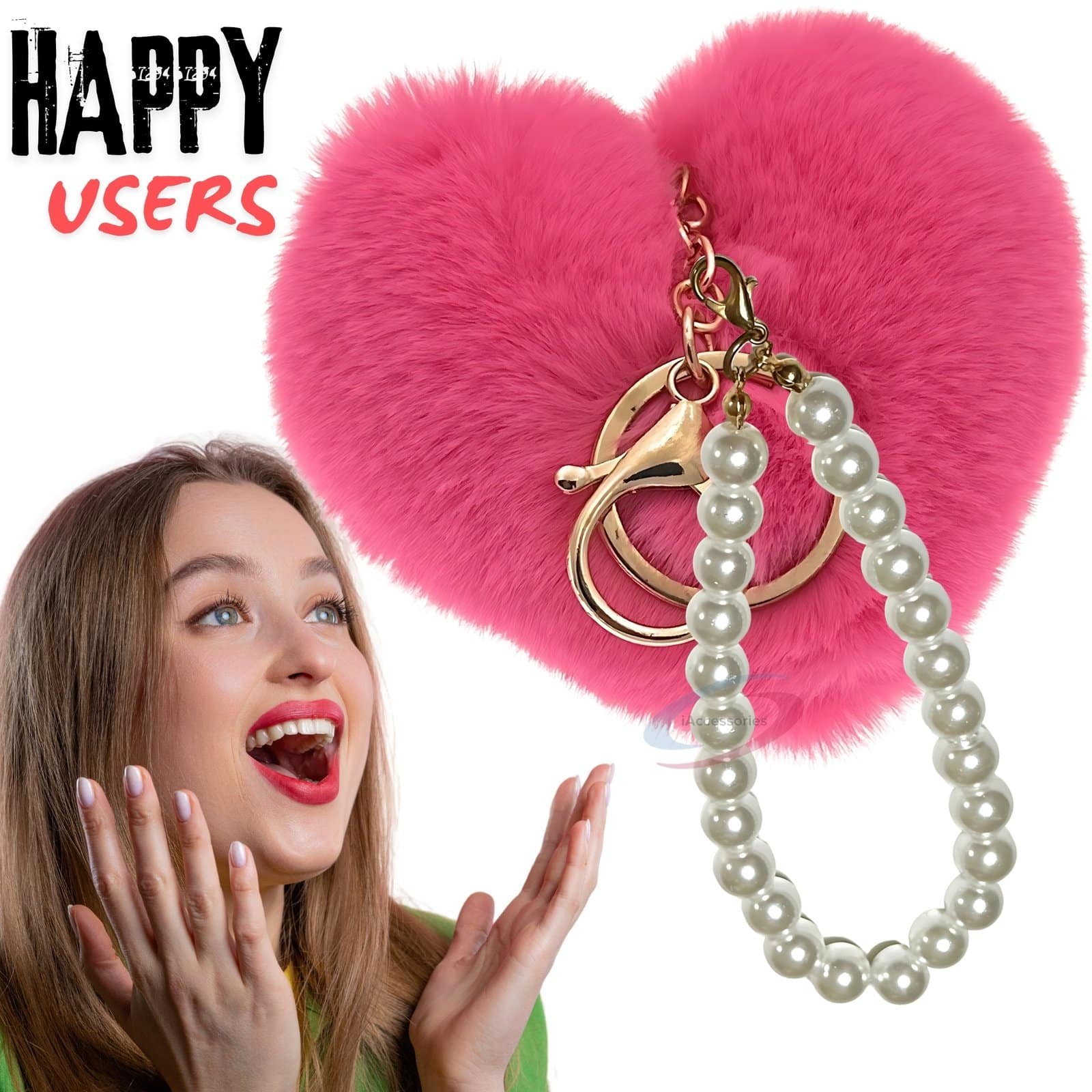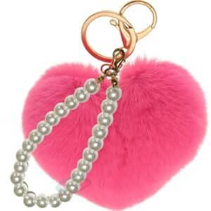 Tired of plain keys or boring bags? Instantly elevate your accessory game with the **iAccessories Fluffy Soft Faux Fur Pompom Heart Key Ring Charm** in vibrant Hot Pink.