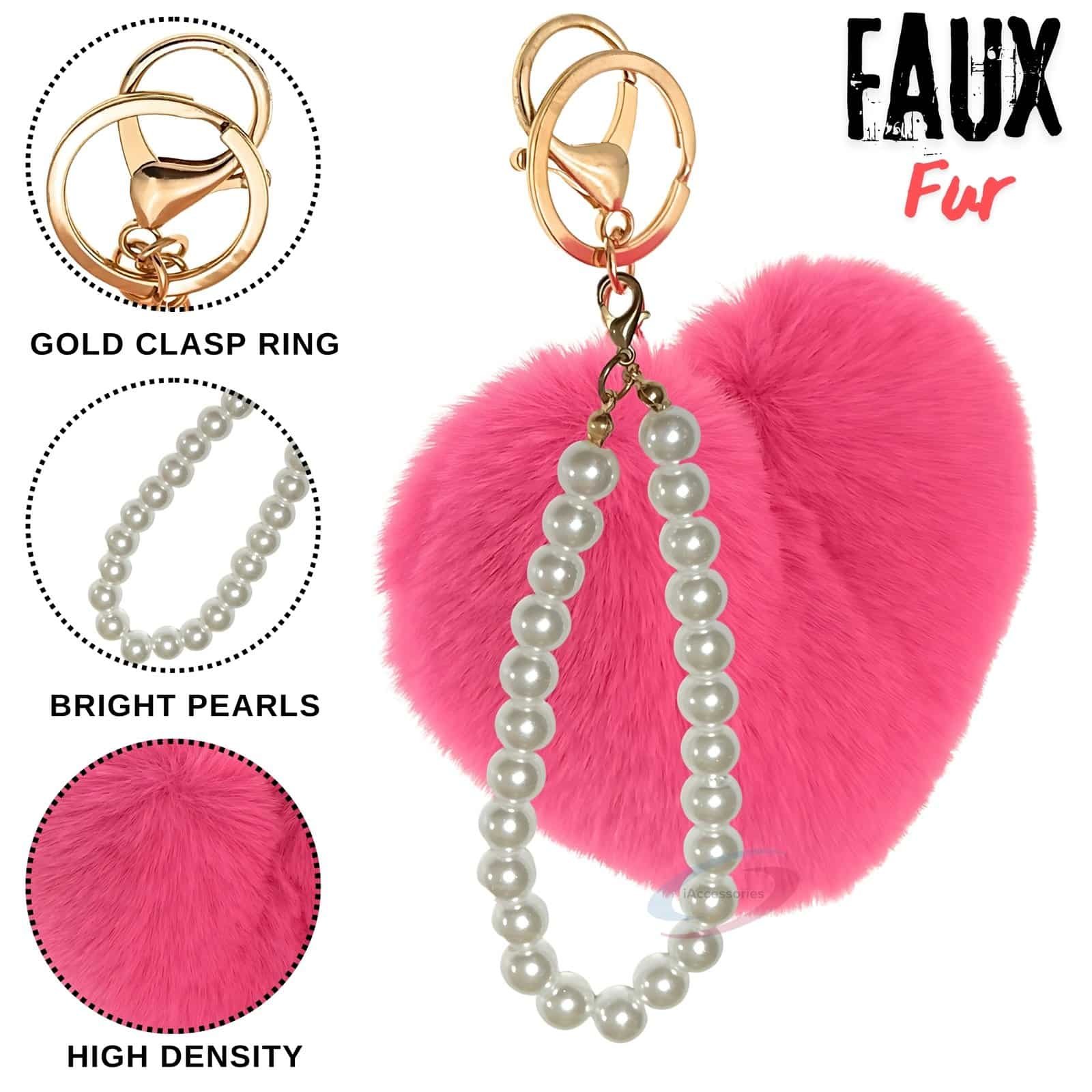 iAccessories Fluffy Faux Fur Heart Keychain with Pearls