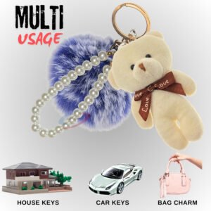Be the first to review “Frosted Blue-White Teddy Pom Pom Fluffy Key Ring – Cute Pearl Charm by iAccessories”