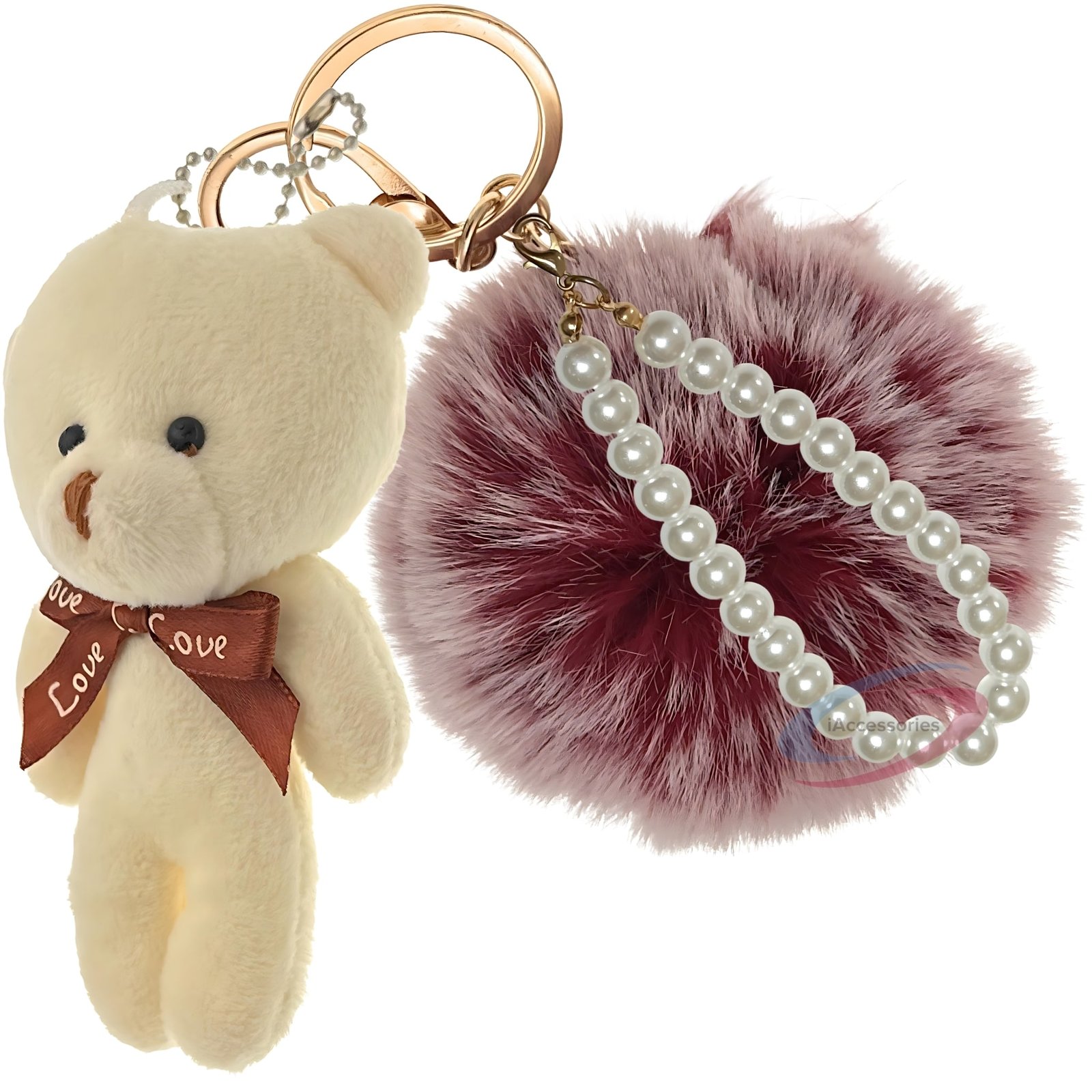 Frosted Red & White Teddy Pom Pom Key Ring – iAccessories Fluffy Faux Fur Pearl Bag Charm