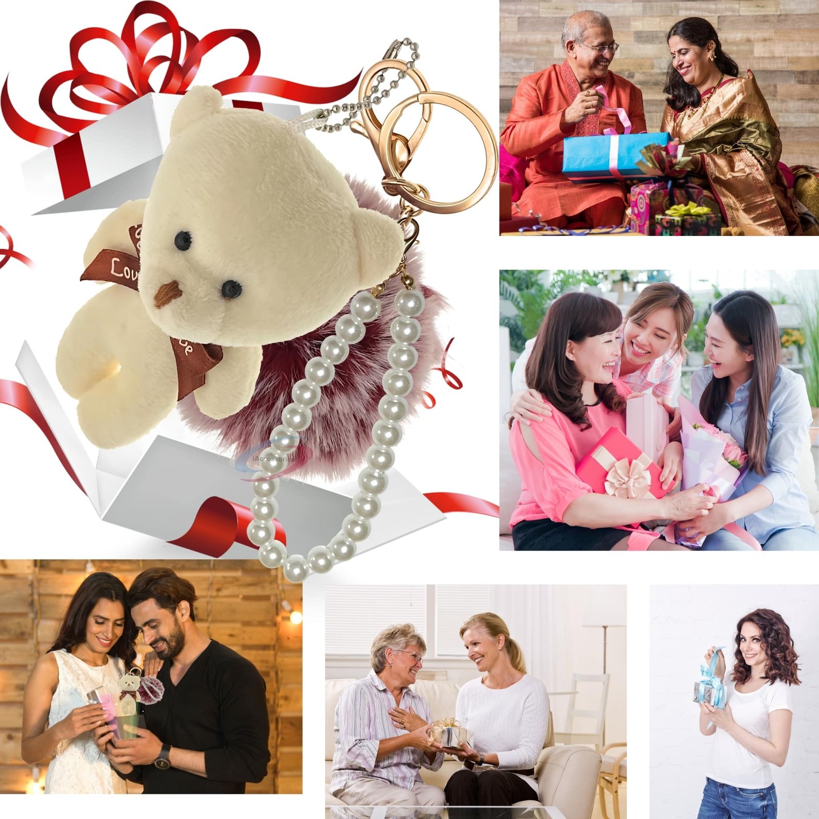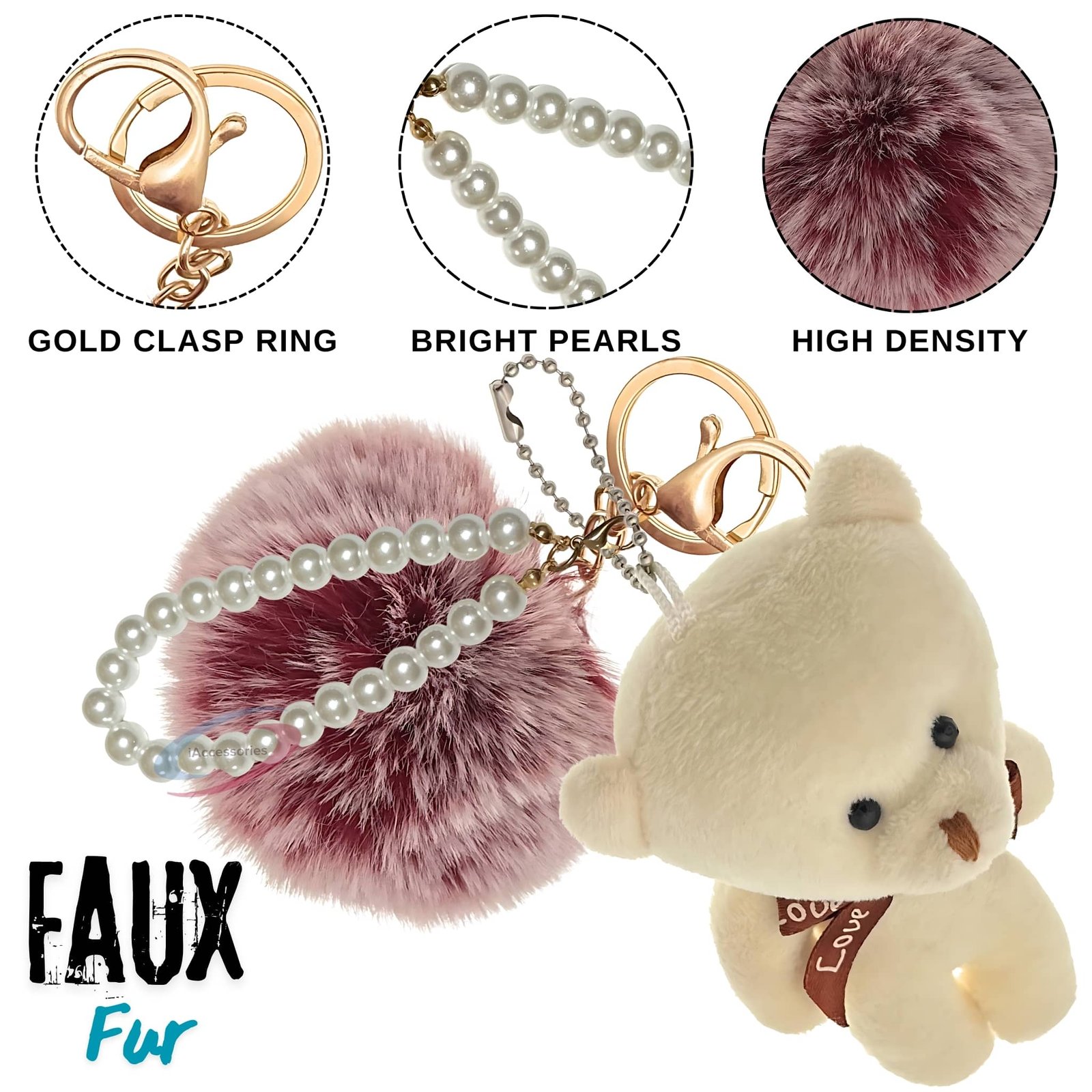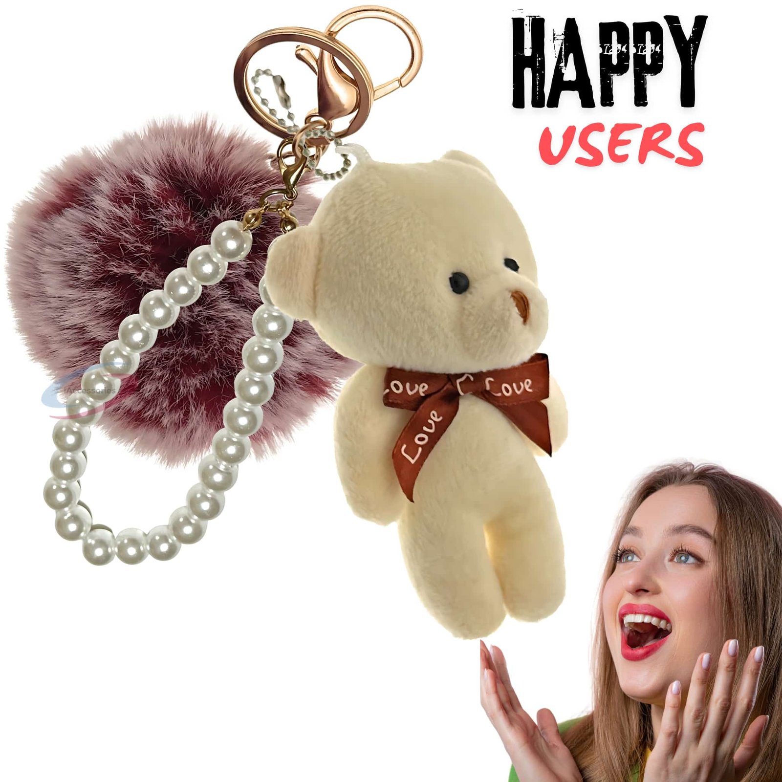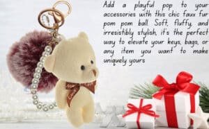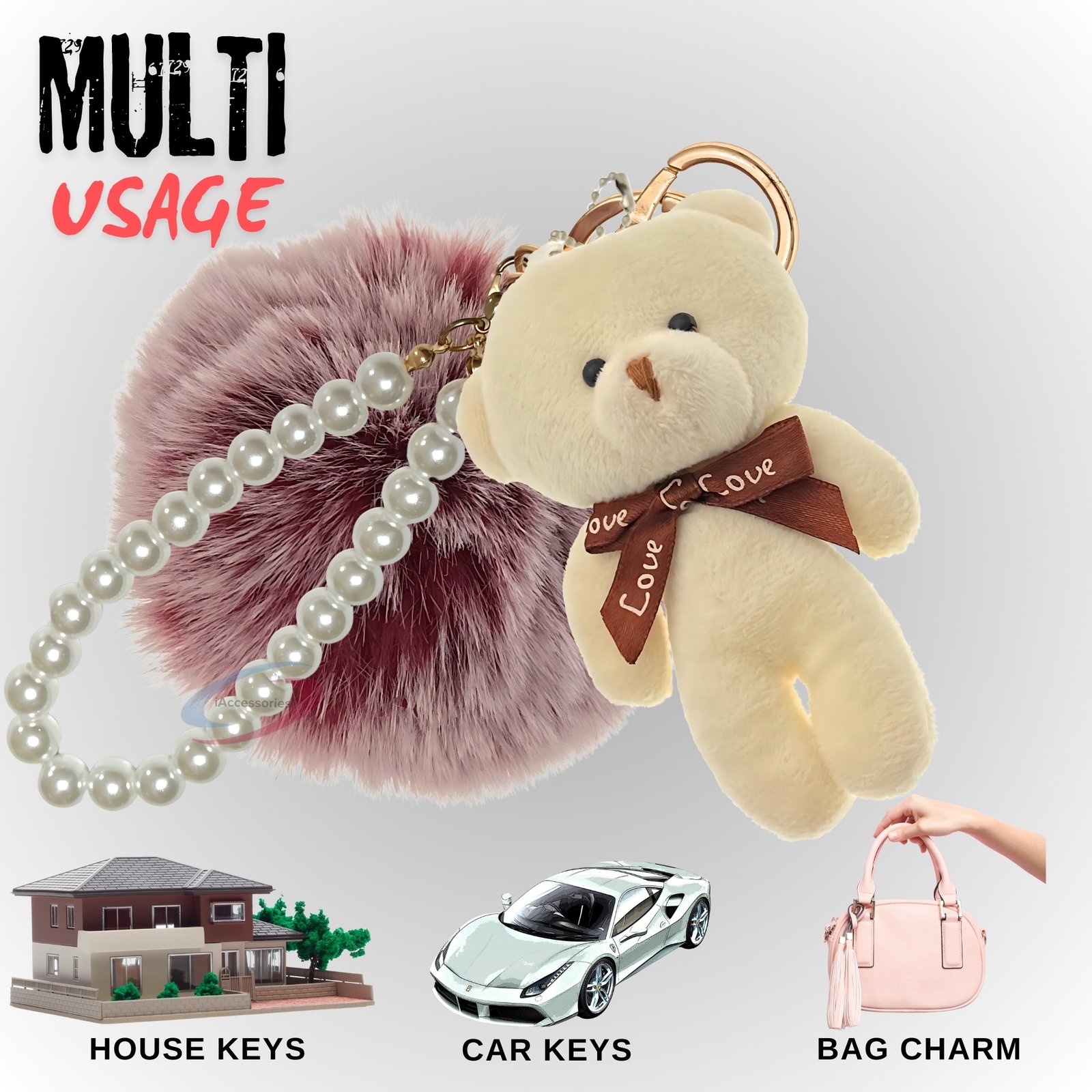 With its teddy design, frosted dual-tone fur, and pearl accent, it adds instant charm to bags, keys, and backpacks.