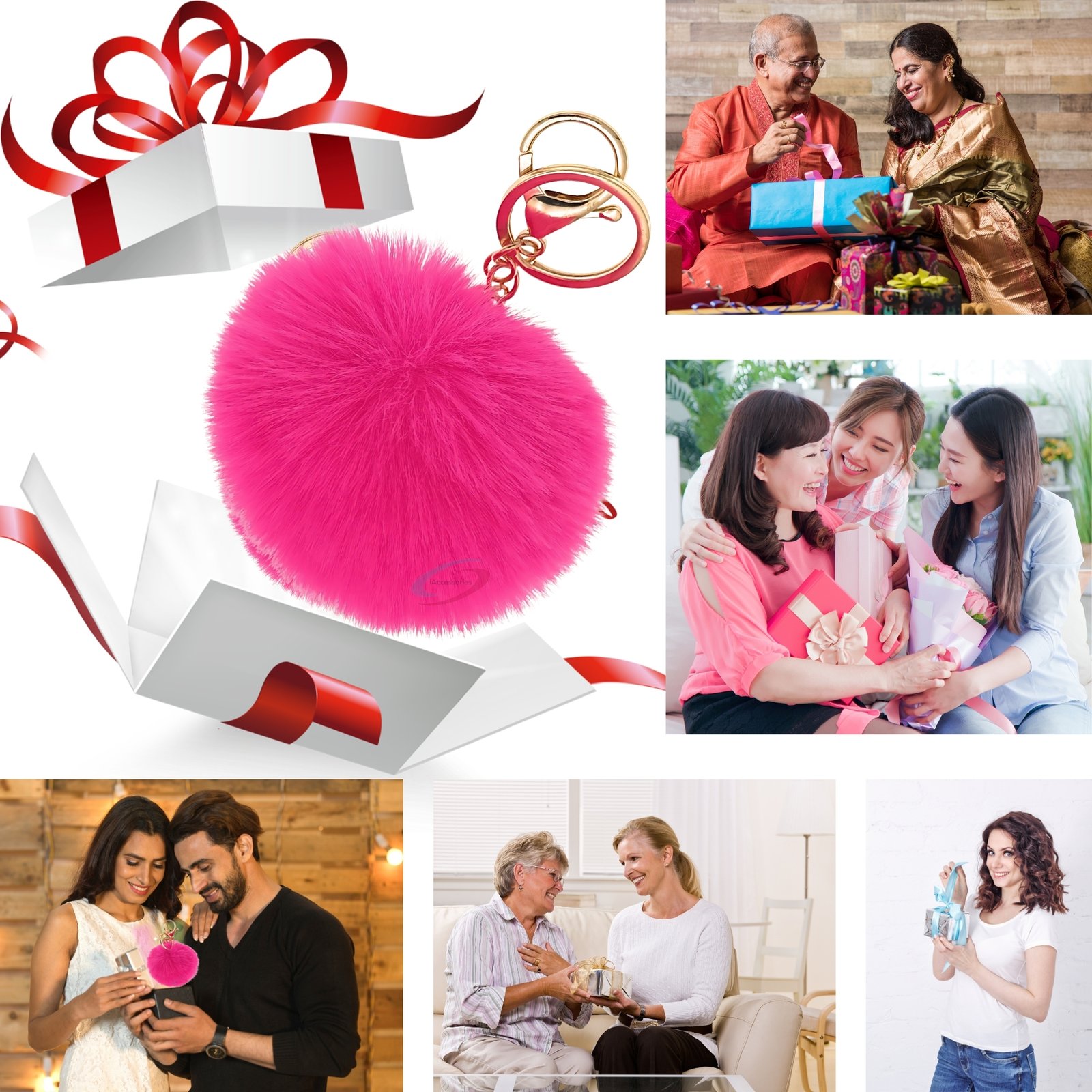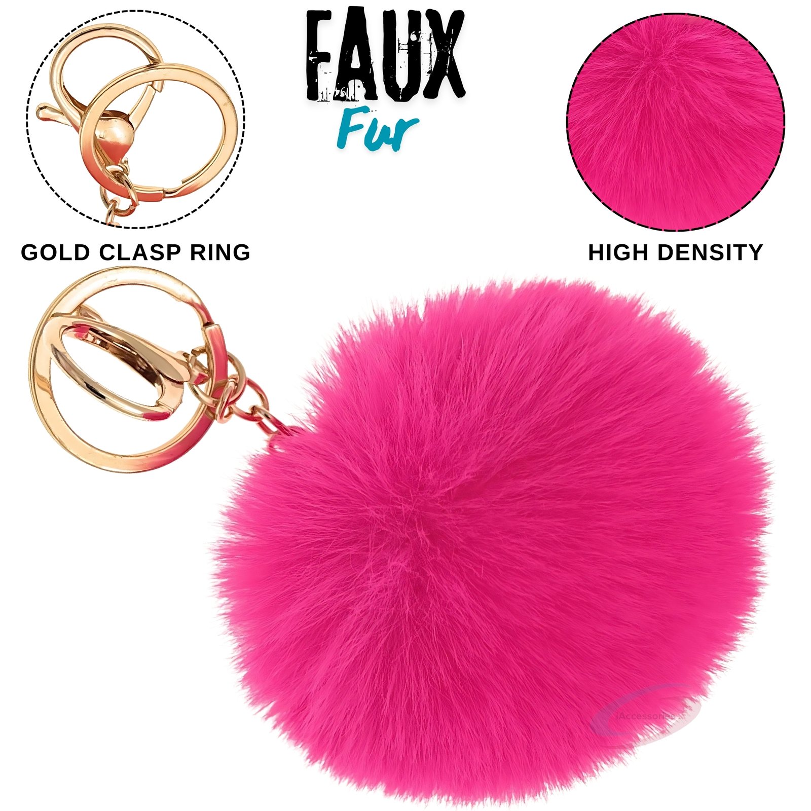 Make a bold style statement with the iAccessories Fluffy Faux Fur Pom Pom Ball Key Ring – Hot Pink.