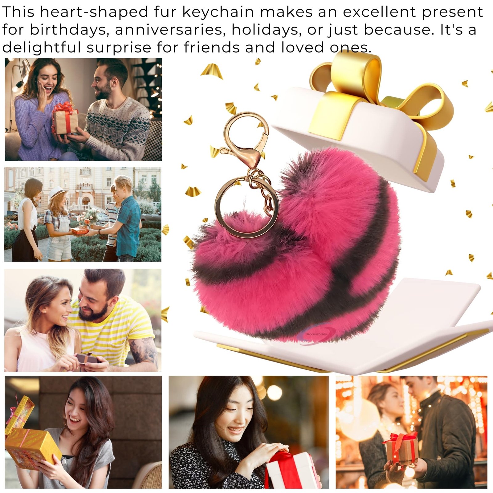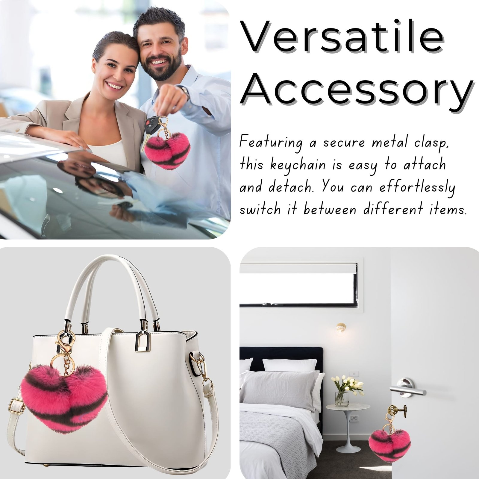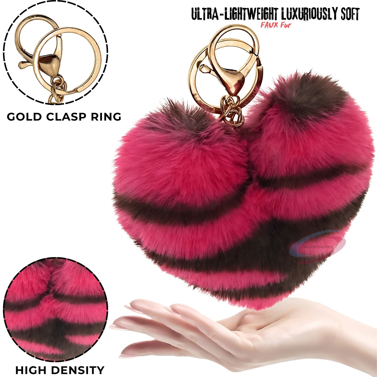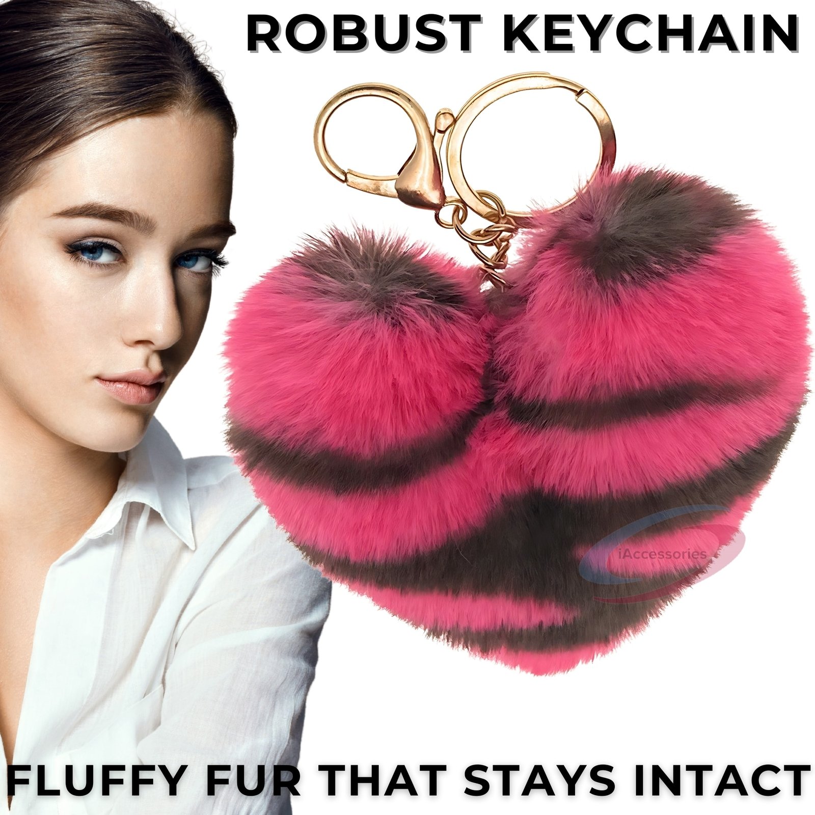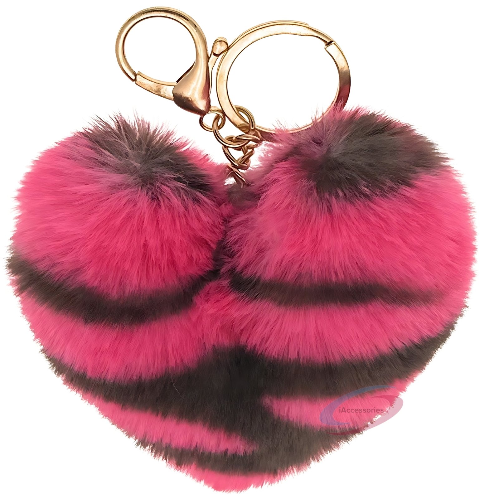 Hot Pink Heart Fluffy Faux Fur Pom Pom Key Ring – Cute Bag Charm by iAccessories
