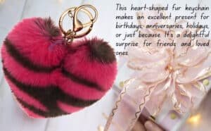 Show off your bold and fun style with the iAccessories Fluffy Faux Fur Pom Pom Heart Key Ring – Hot Pink Lepo.