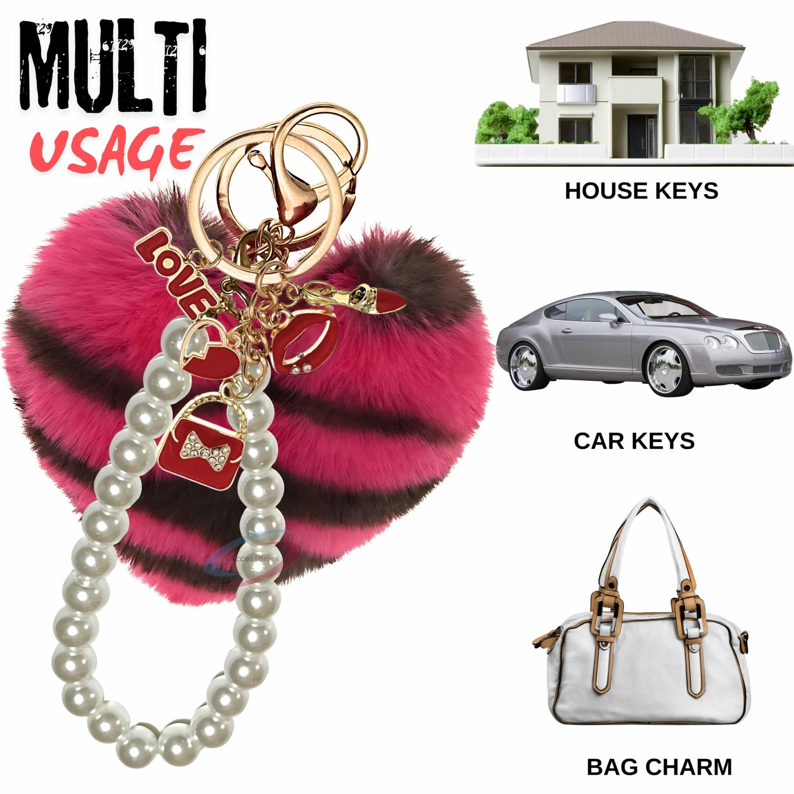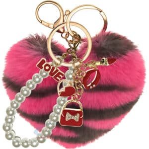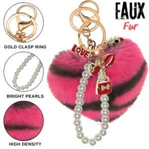 Add instant glamour to your accessories with the iAccessories Fluffy Faux Fur Pearl Heart Pom Pom Keychain – Hot Pink Lepo.