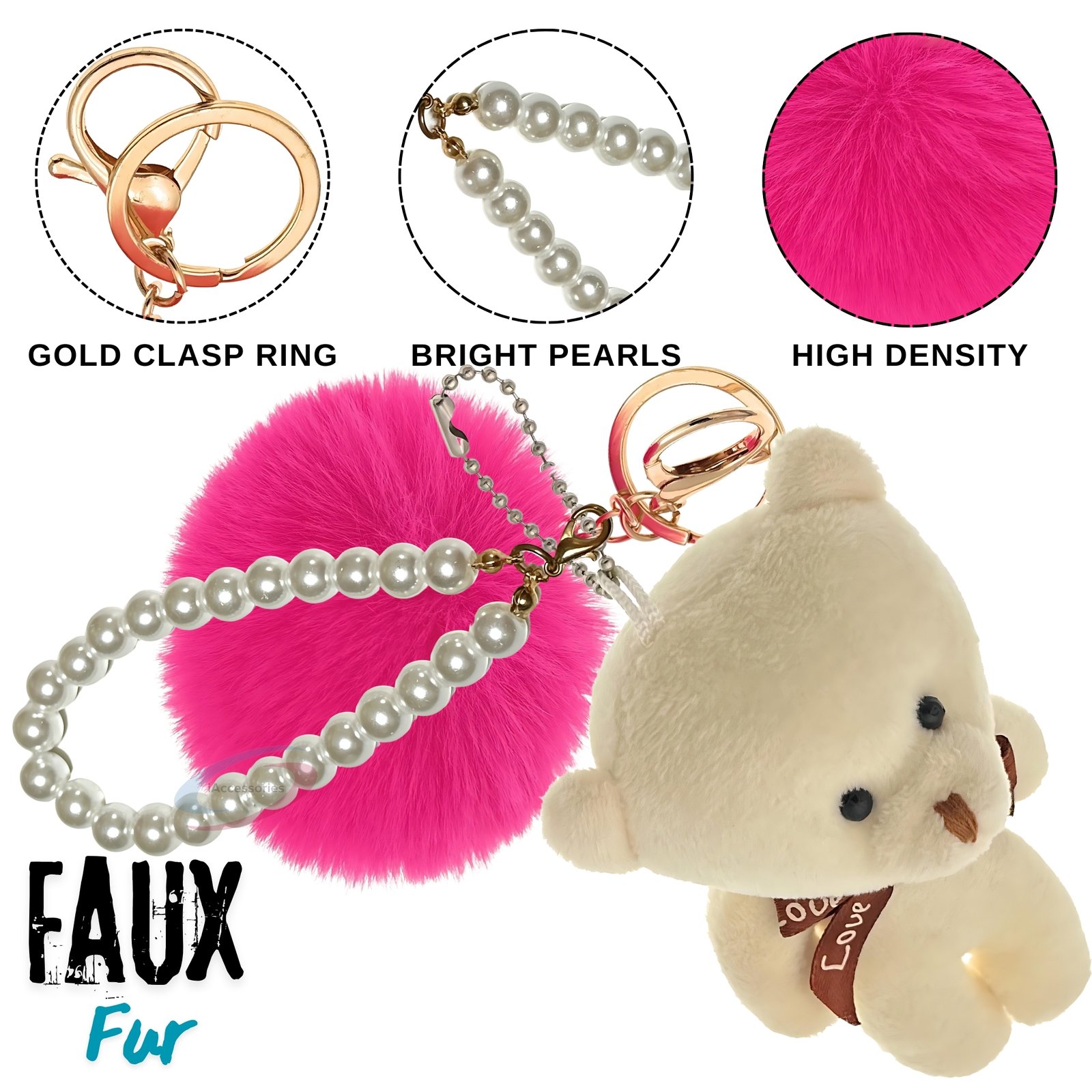 Bright, bold and adorable! The iAccessories Fluffy Faux Fur Pearl Teddy Pom Pom Key Ring – Hotpink-White brings a playful and stylish vibe to any bag or key set.