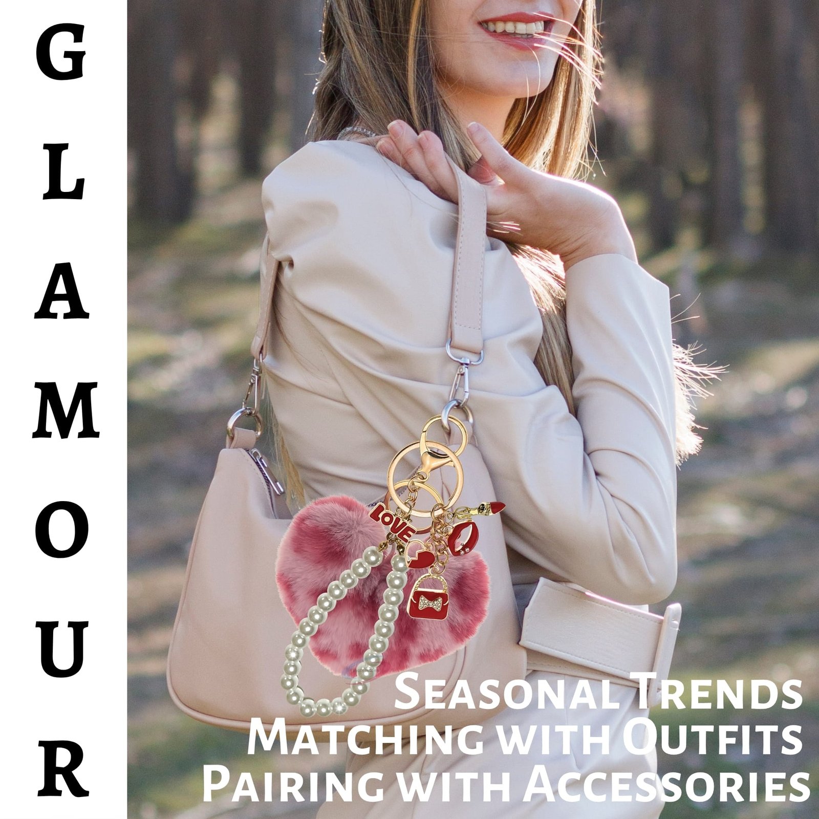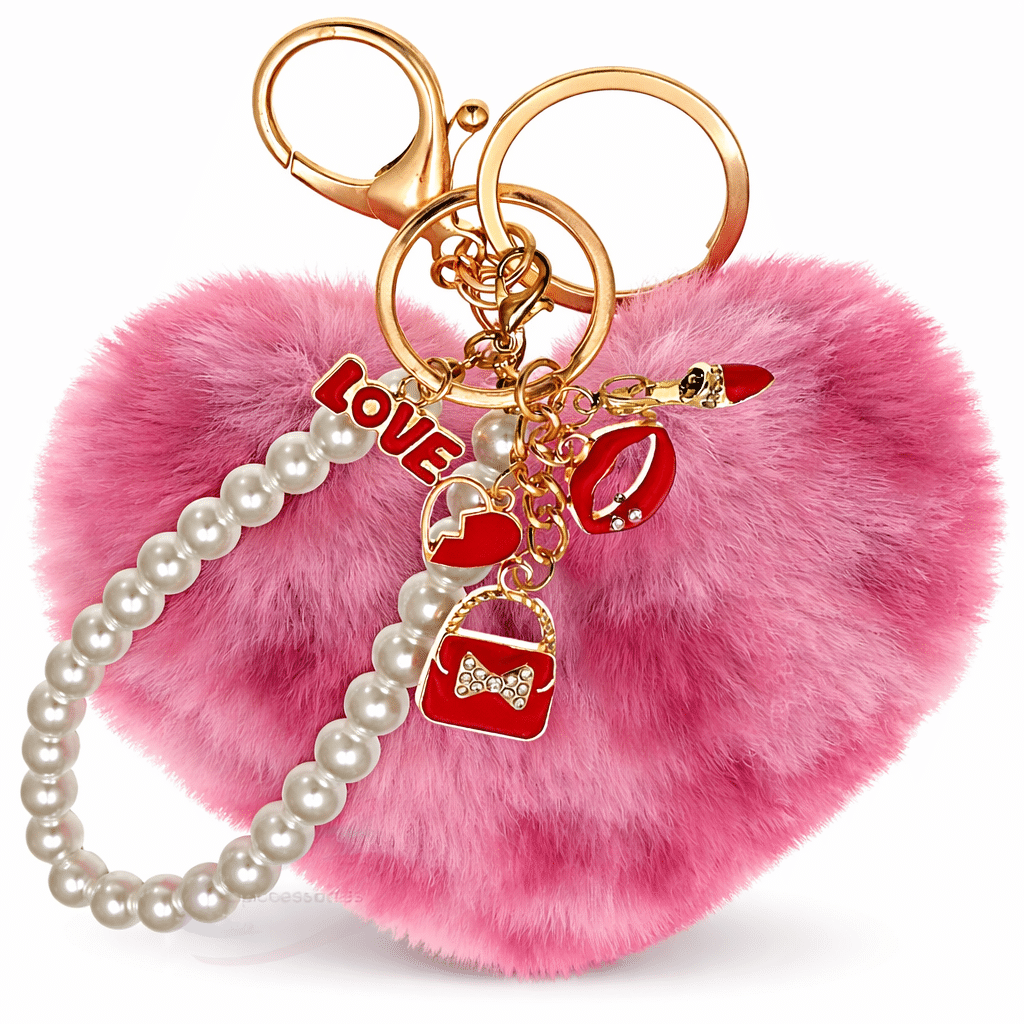 The **iAccessories Fluffy Faux Fur Pearl Fashion Pom Pom Heart Keychain Charm – Rose Lepo** is a beautiful mix of cuteness and elegance.