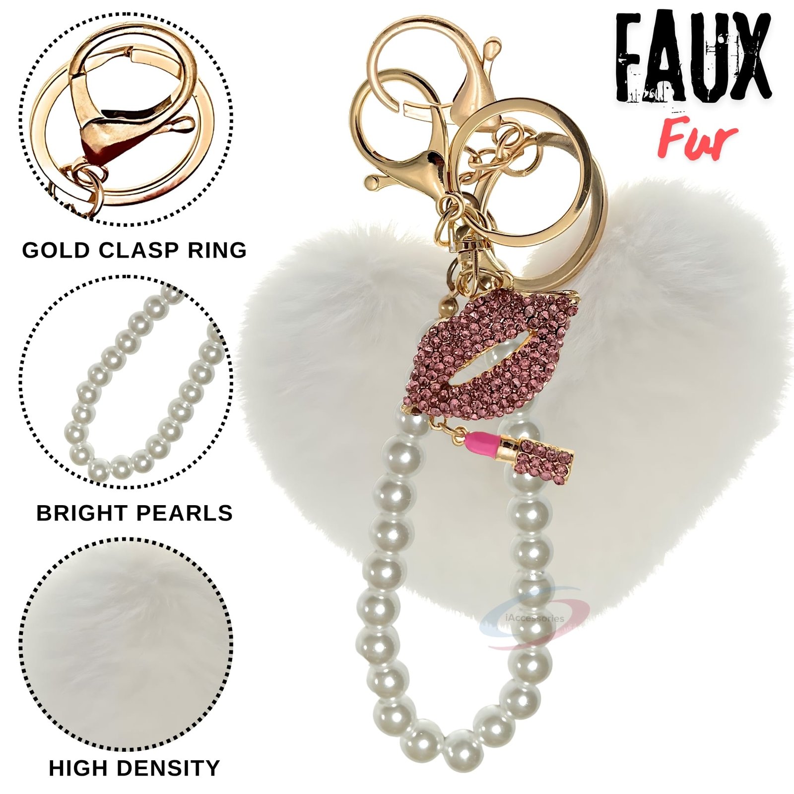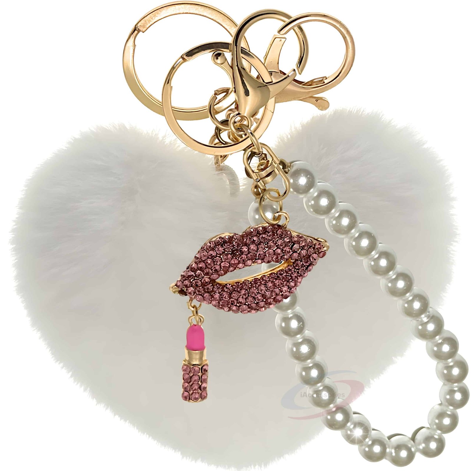iAccessories Pearl Diamond Lips Faux Fur Heart Key Ring
