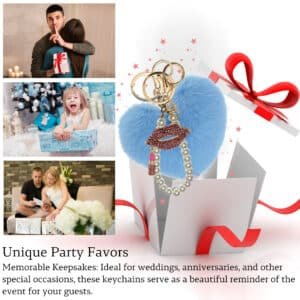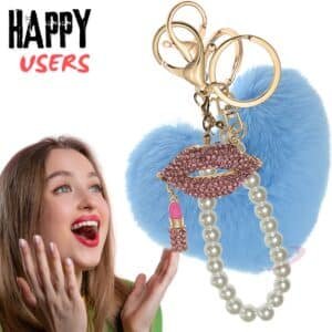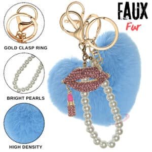 The **iAccessories Pearl Diamond Lips Fluffy Faux Fur Pom Pom Heart Key Ring – Light Blue** adds a luxurious and stylish touch to your daily accessories.