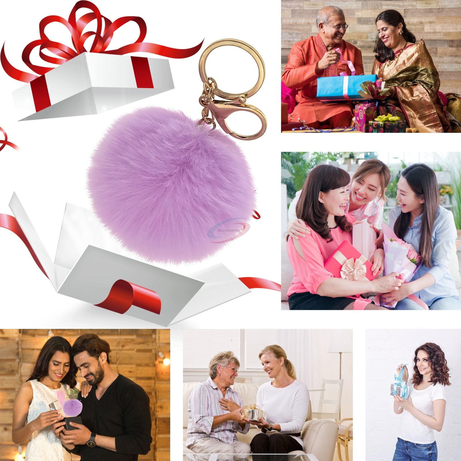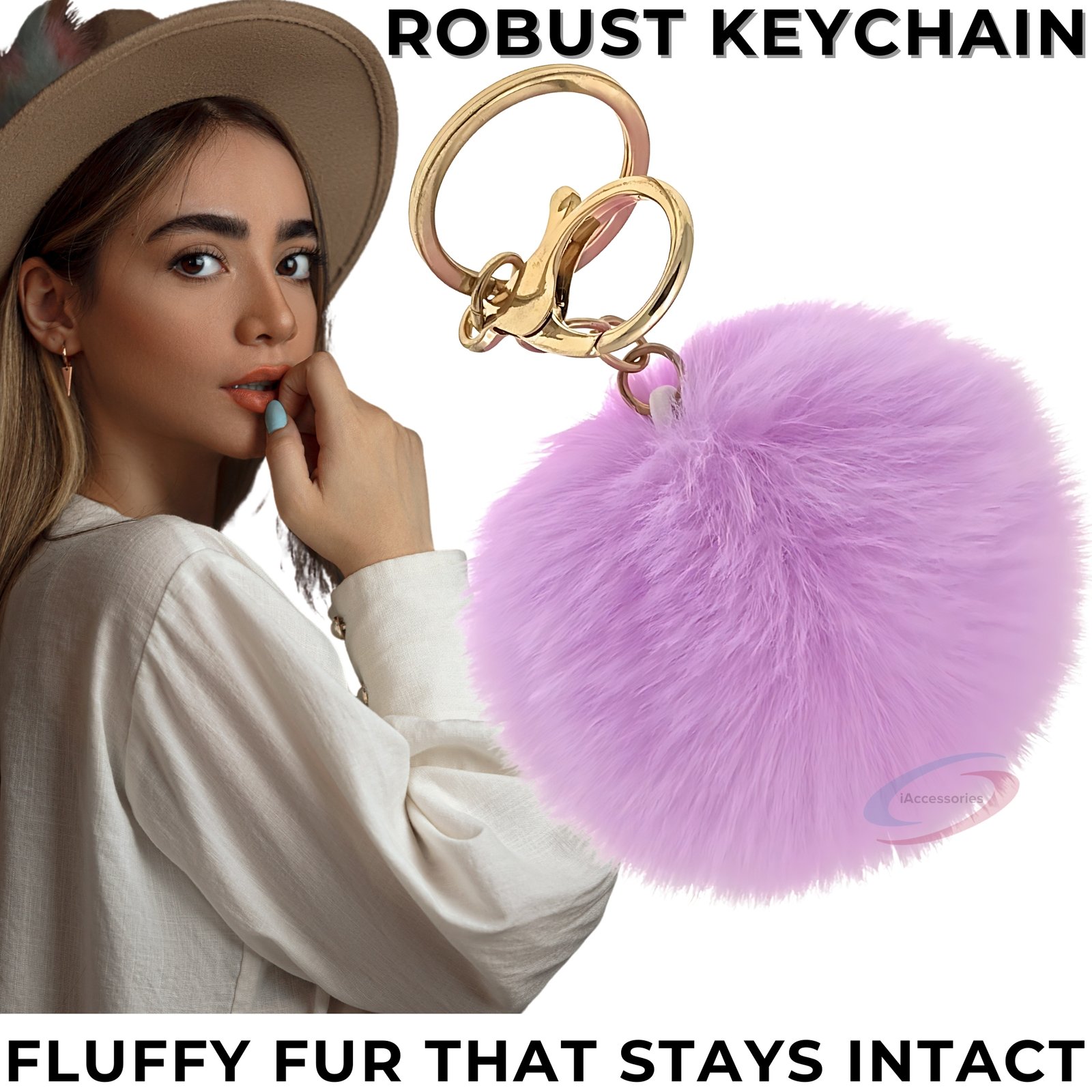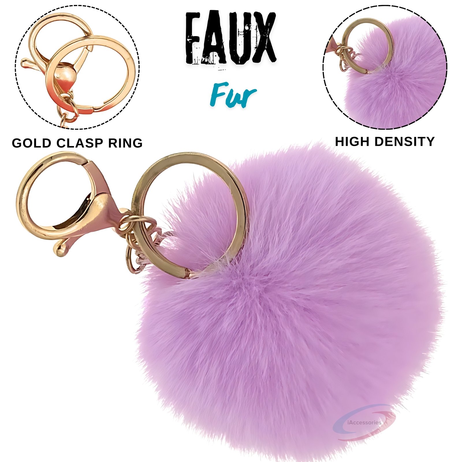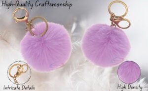 Add a soft pastel charm to your everyday accessories with the iAccessories Fluffy Faux Fur Pom Pom Ball Key Ring – Light Purple.