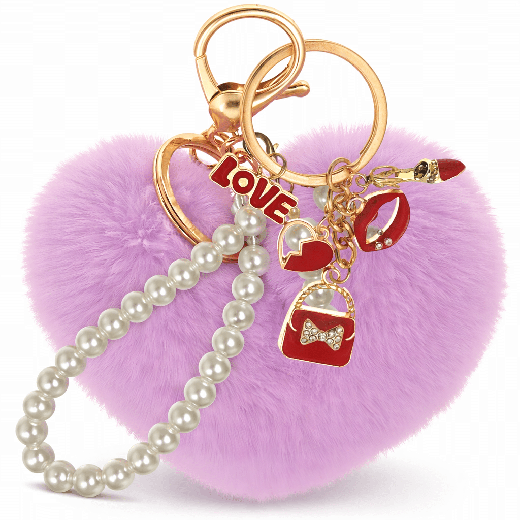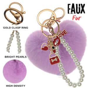 The **iAccessories Fluffy Faux Fur Pearl Fashion Pom Pom Heart Keychain Charm – Light Purple** is a beautiful mix of cuteness and elegance.