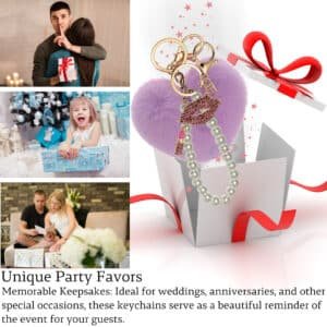 The **iAccessories Pearl Diamond Lips Fluffy Faux Fur Pom Pom Heart Key Ring – Light Purple** is a blend of elegance, sparkle, and cuteness.
