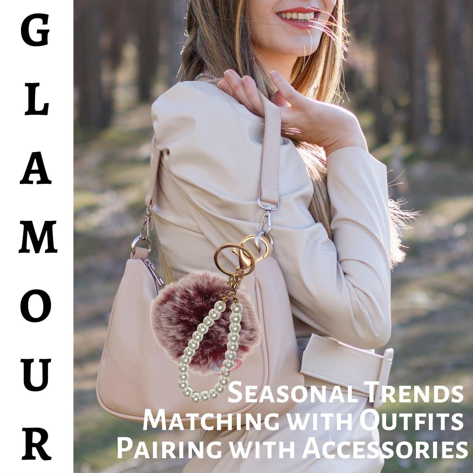 Tired of plain keys or boring bags? Instantly elevate your accessory game with the **iAccessories Faux Fur Pompom with Pearls Keychain Charm** in elegant Frosted Red.