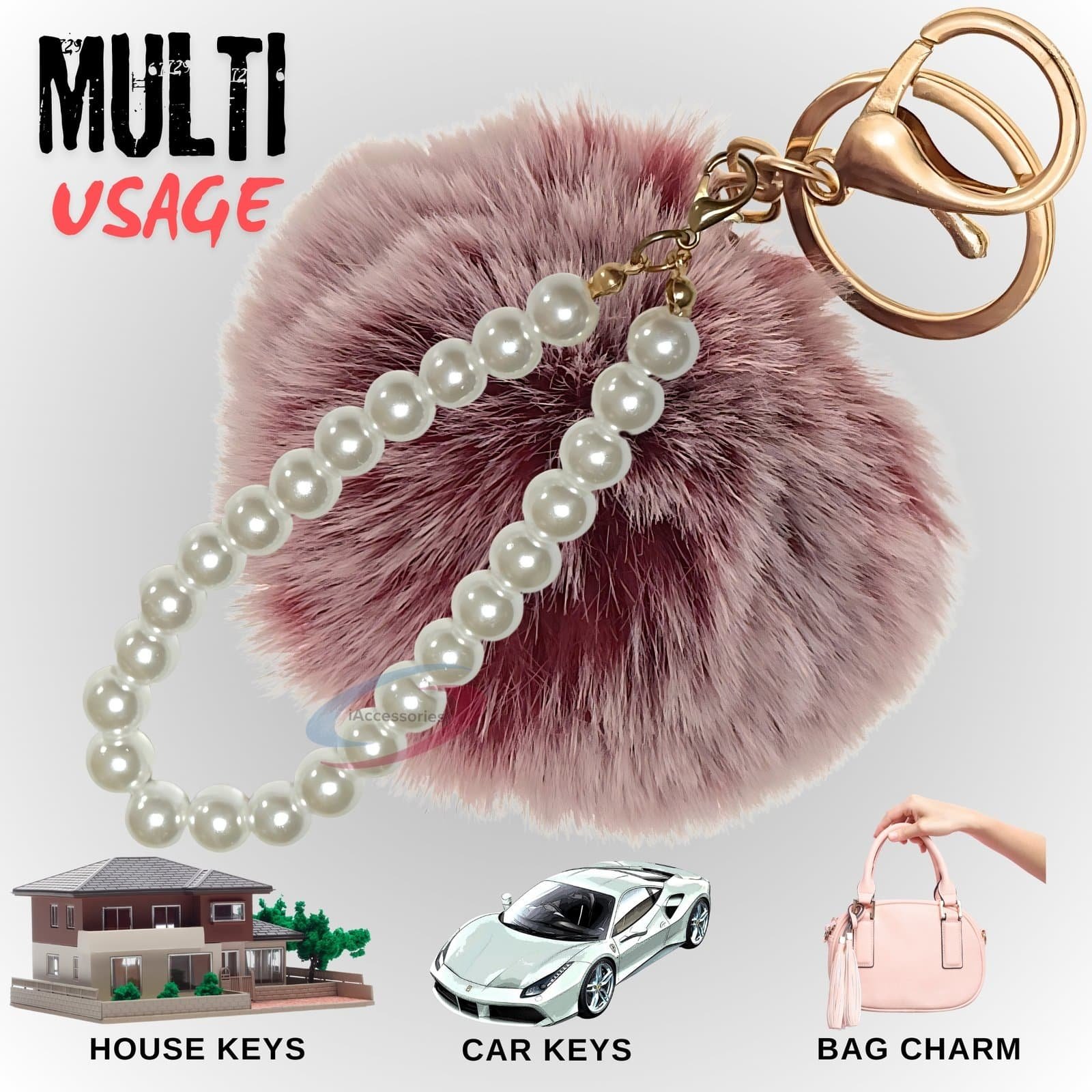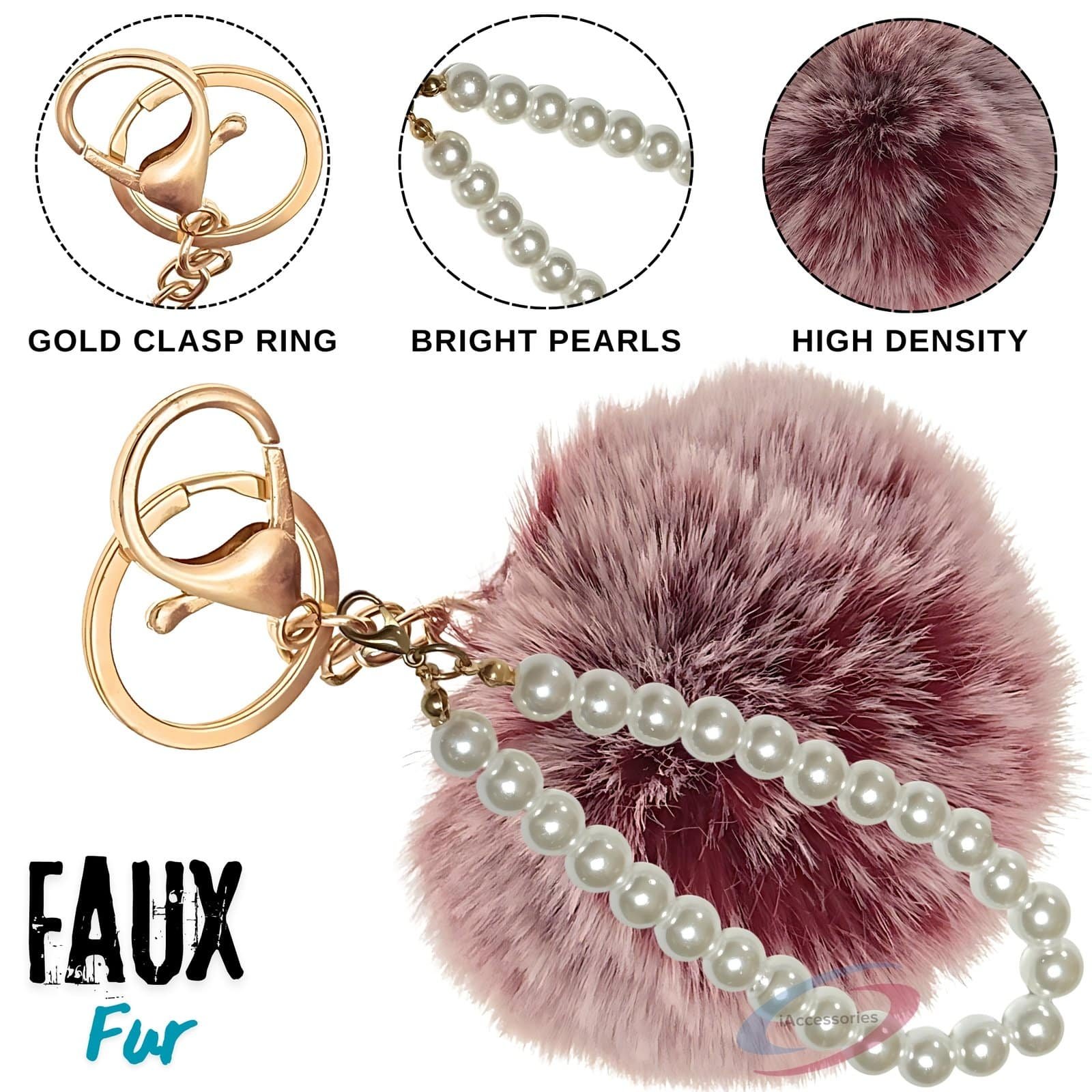 iAccessories Faux Fur Pompom Keychain with Pearls