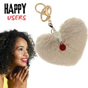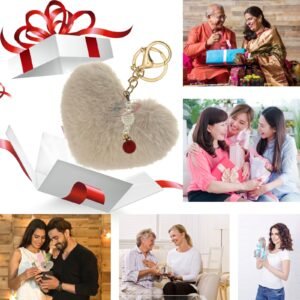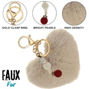 - Elegant Design: Features a soft, heart-shaped faux fur pompom in a classic beige color, paired with a delicate pearl pendant.