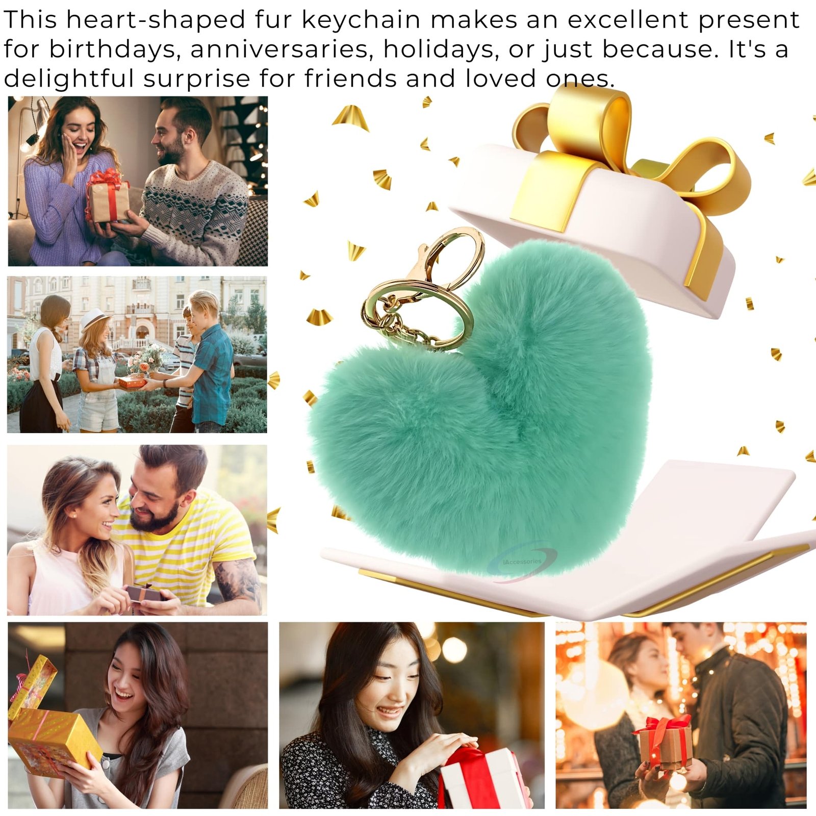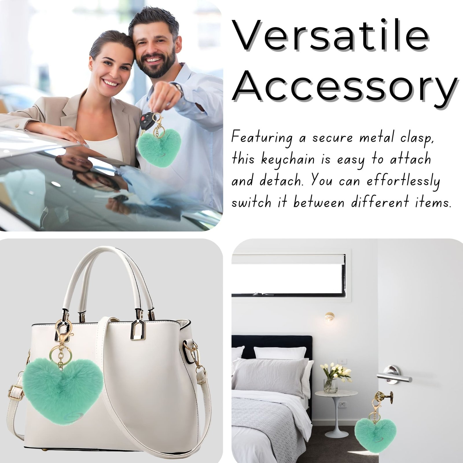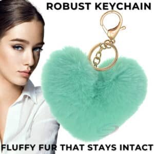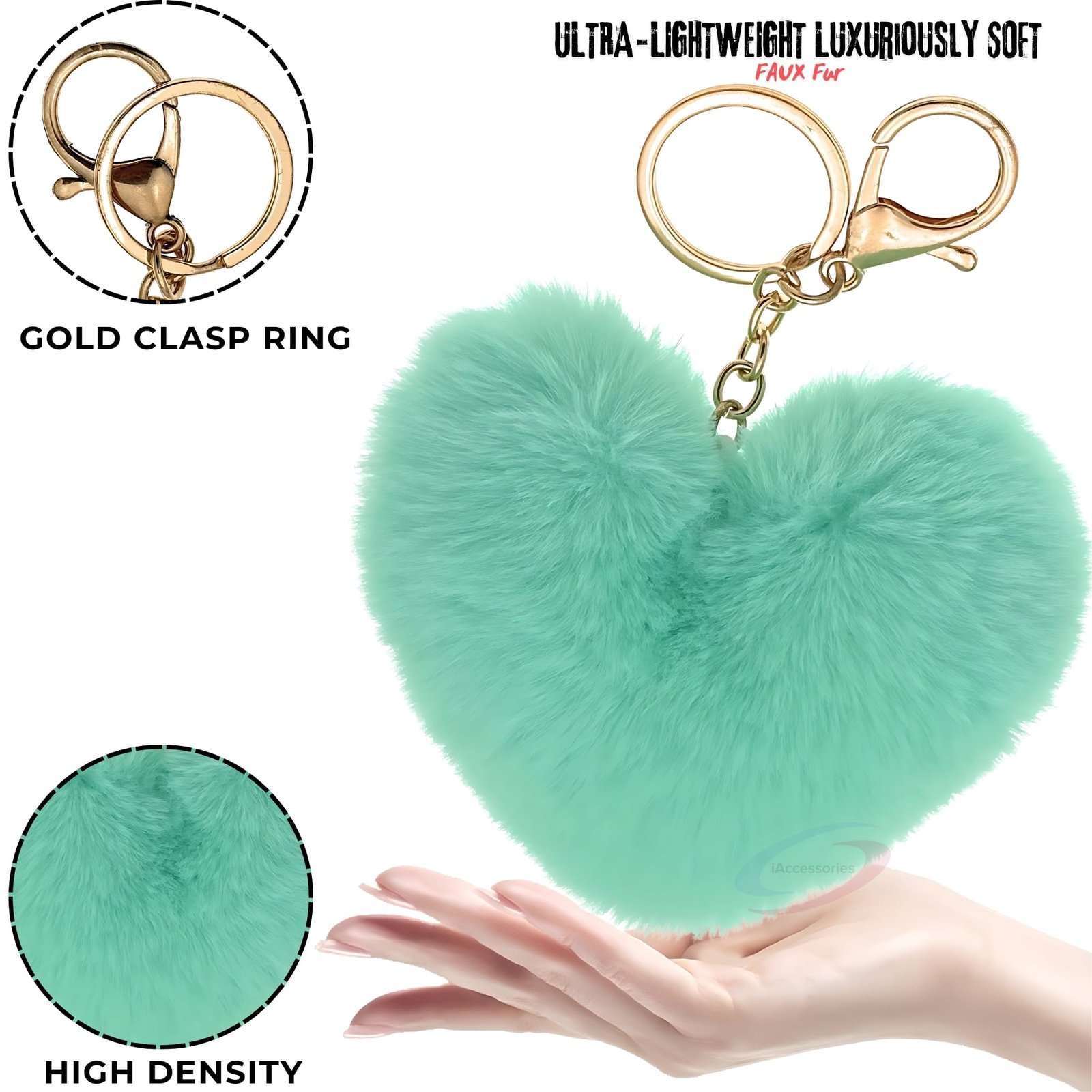 Give your everyday essentials a cute and fashionable upgrade with the iAccessories Fluffy Faux Fur Heart Pom Pom Key Ring – Mint Green.