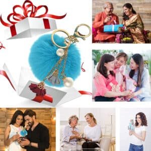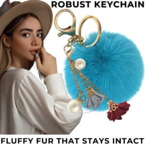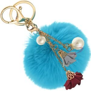 Peacock Blue Faux Fur Pearls & Roses Pom Pom Key Ring – iAccessories Premium Bag Charm
