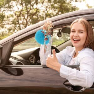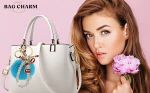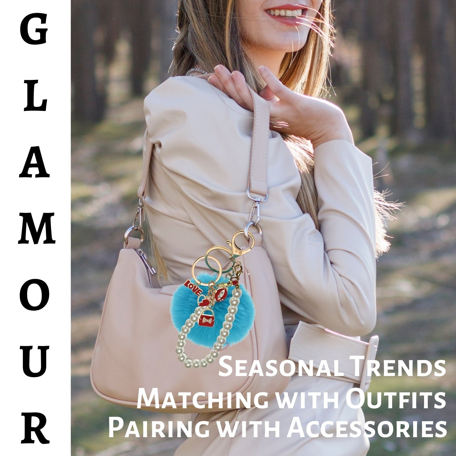 Its rich Peacock Blue shade paired with a shiny pearl charm gives a glamorous look to any handbag or key set.