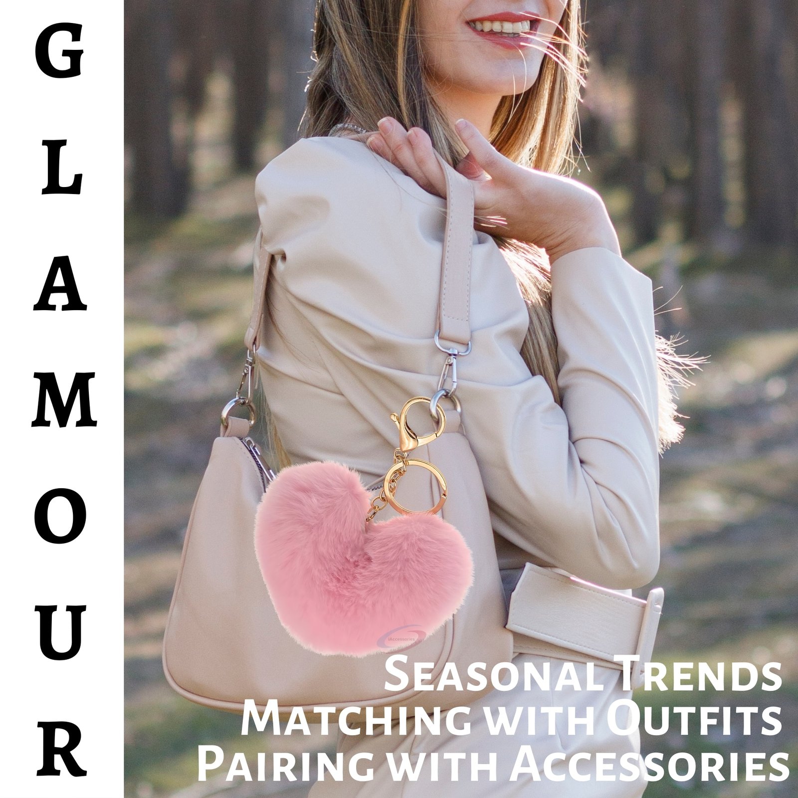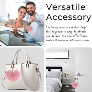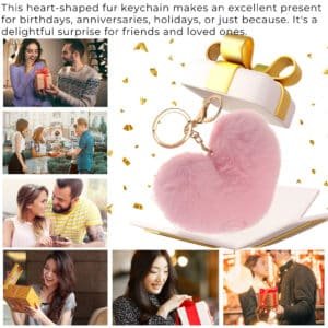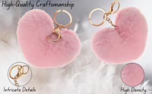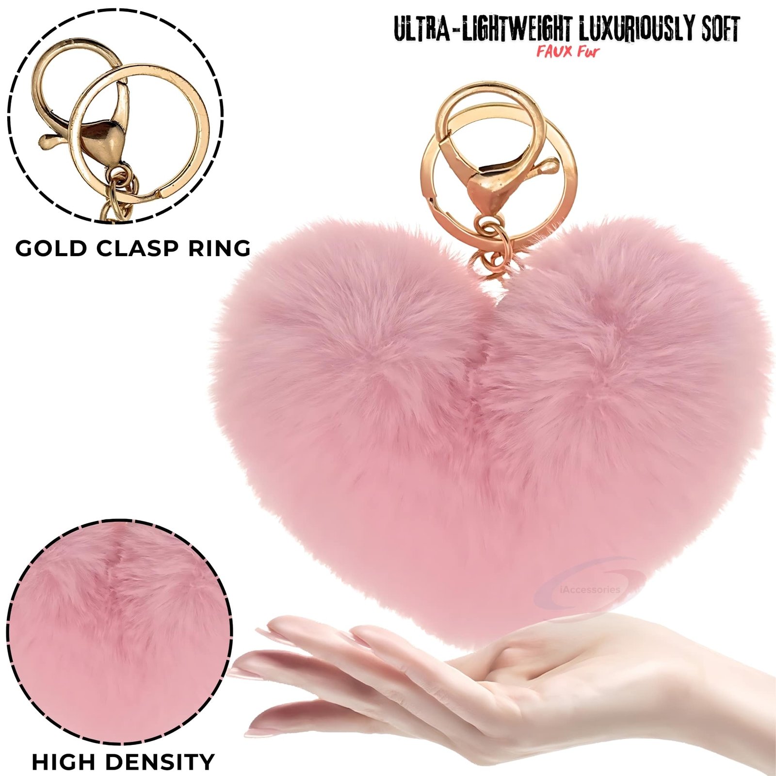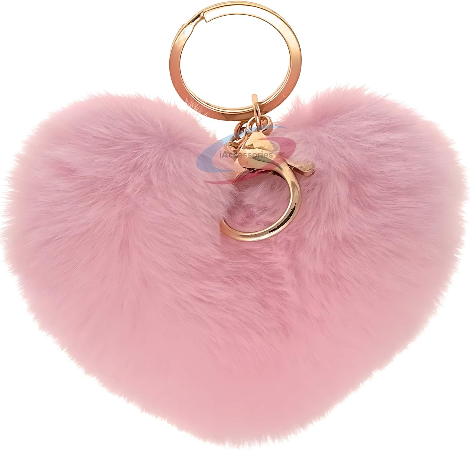 Add a sweet and charming look to your everyday essentials with the iAccessories Fluffy Faux Fur Pom Pom Heart Key Ring – Pink.