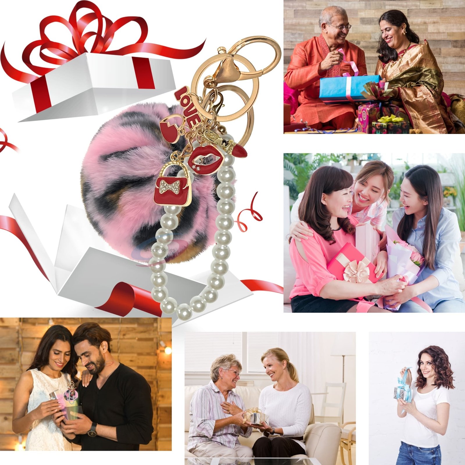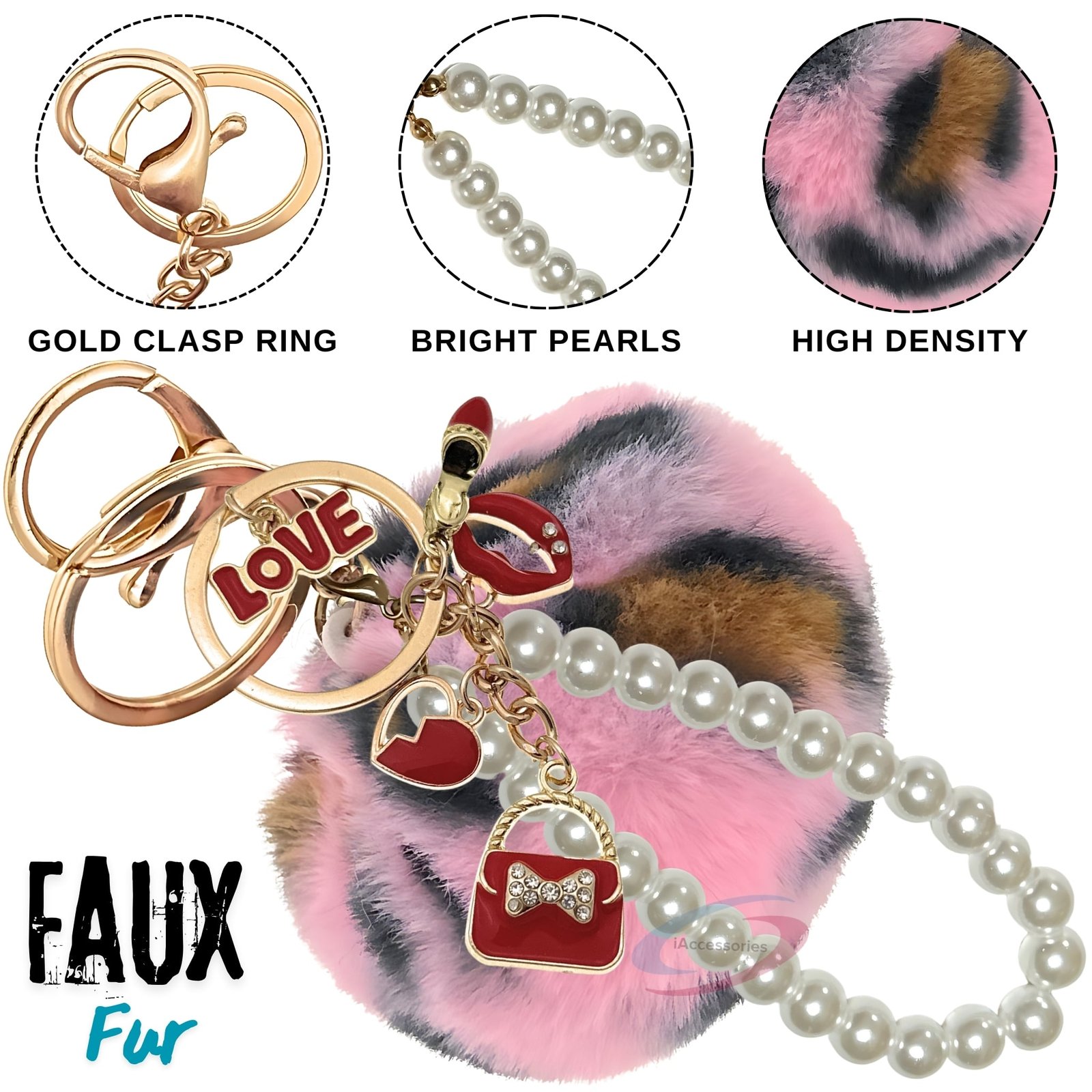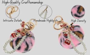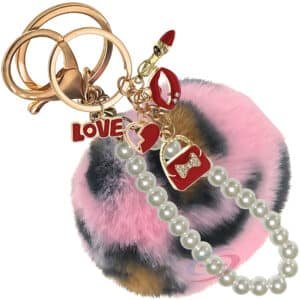 Upgrade your everyday style with the iAccessories Fluffy Faux Fur Pearl Pom Pom Keychain Charm – Pink Lepo.
