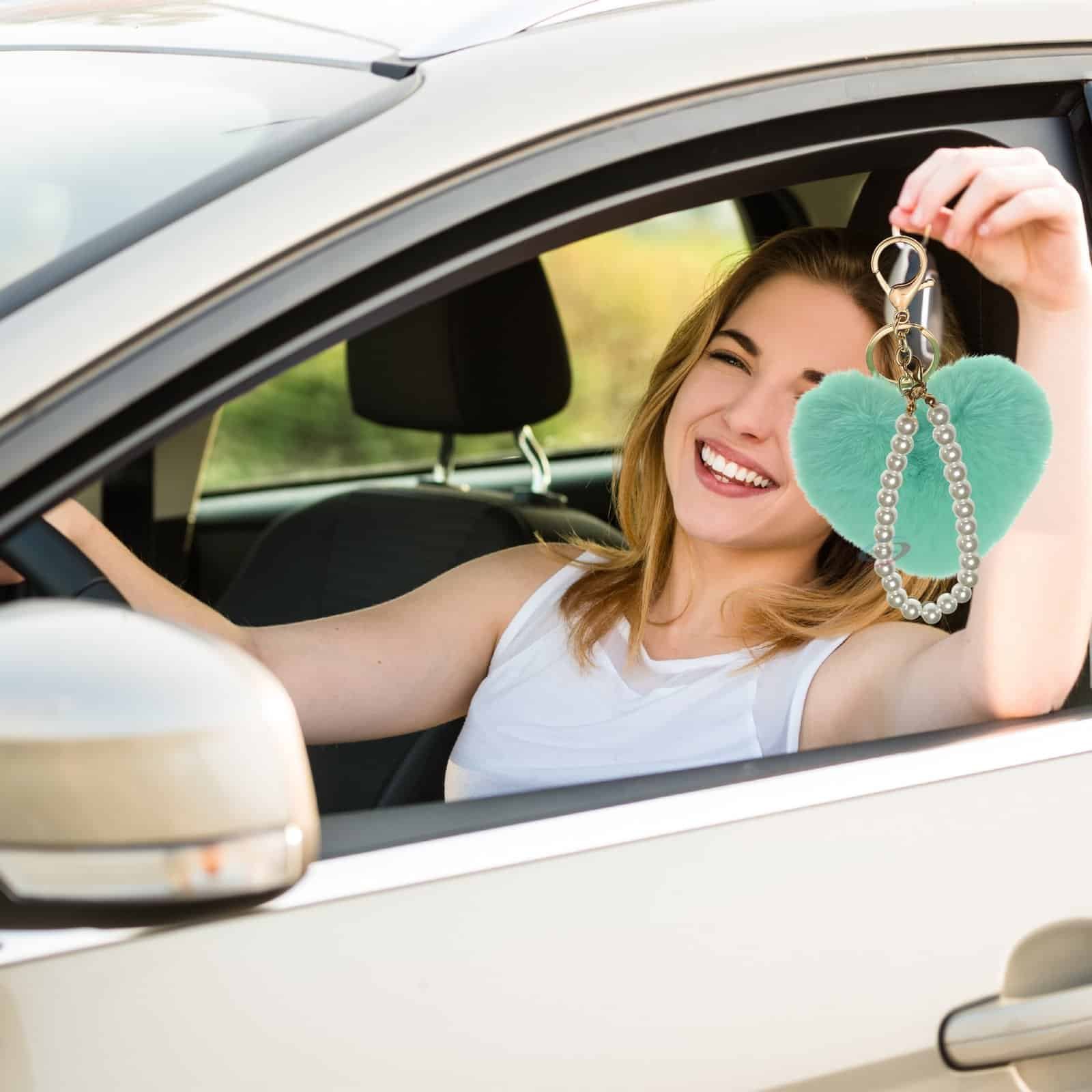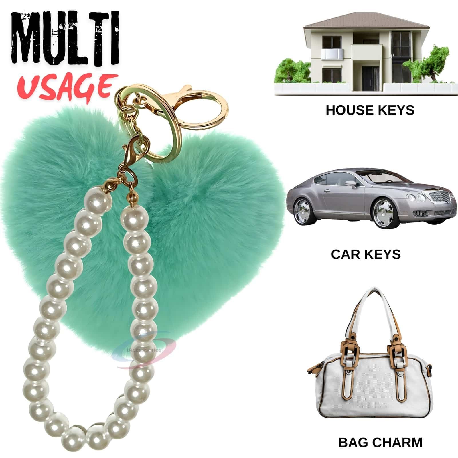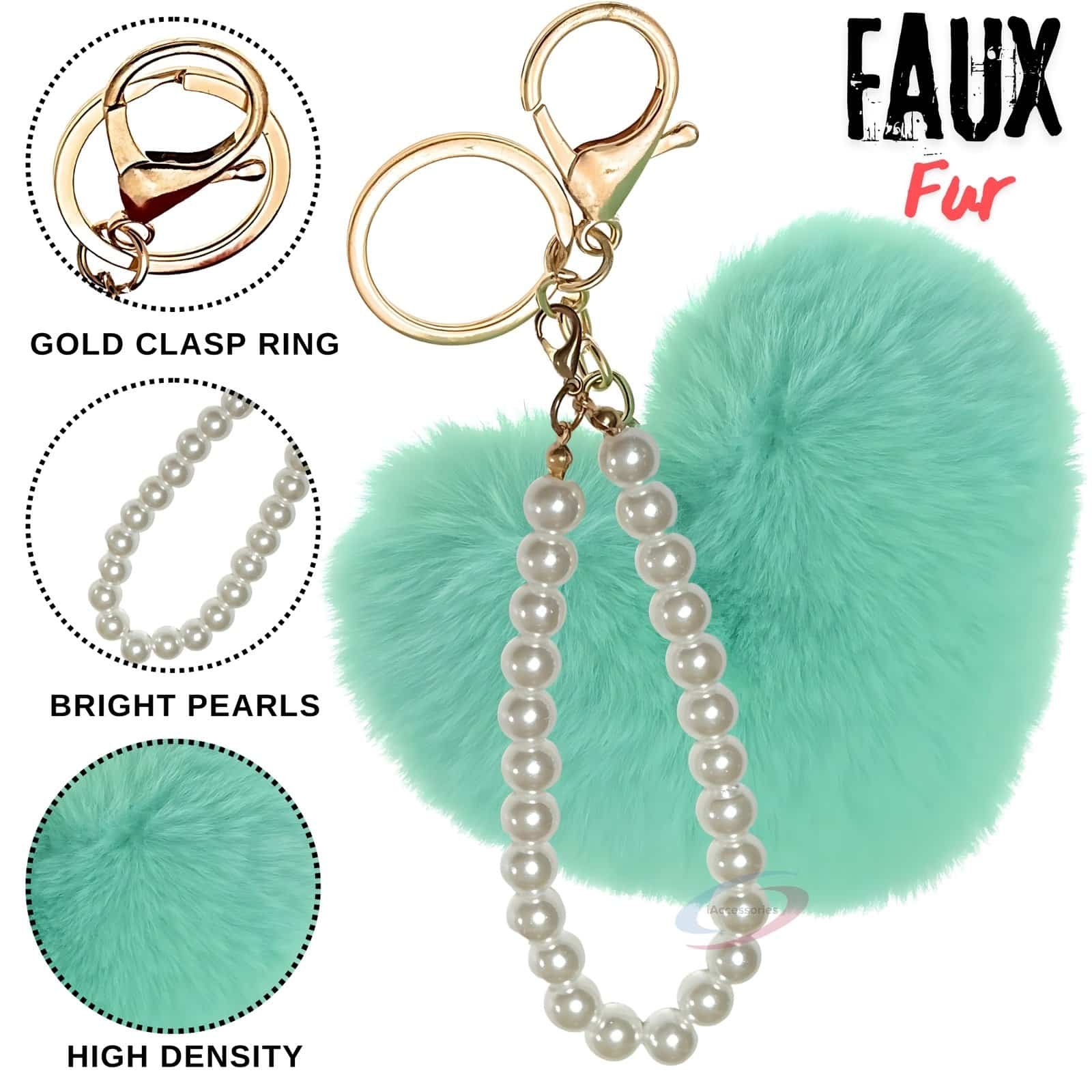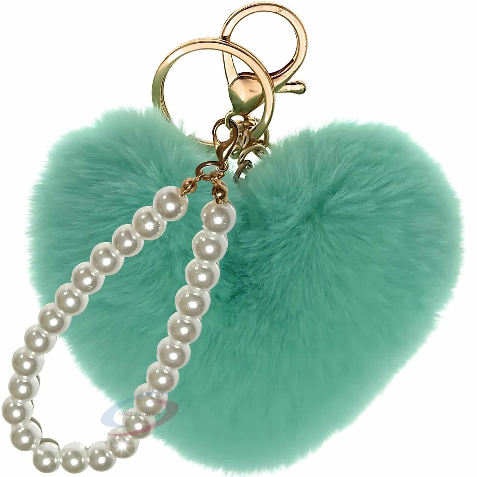 Tired of plain keys or boring bags? Instantly elevate your accessory game with the **iAccessories Fluffy Soft Faux Fur Pompom Heart Key Ring Charm** in refreshing Mint Green.
