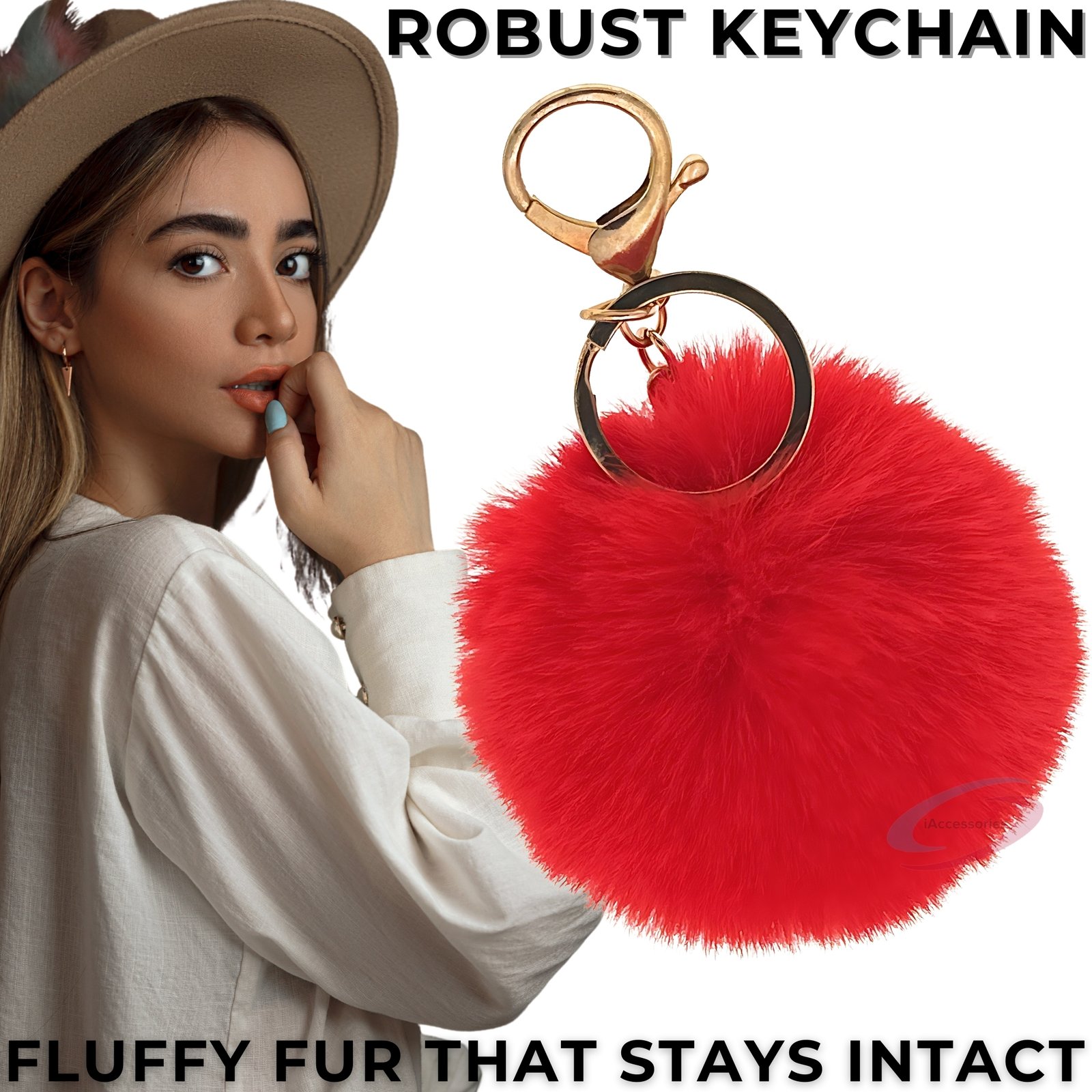 Make your bags and keys look instantly adorable with the iAccessories Fluffy Faux Fur Pom Pom Ball Key Ring – Red.
