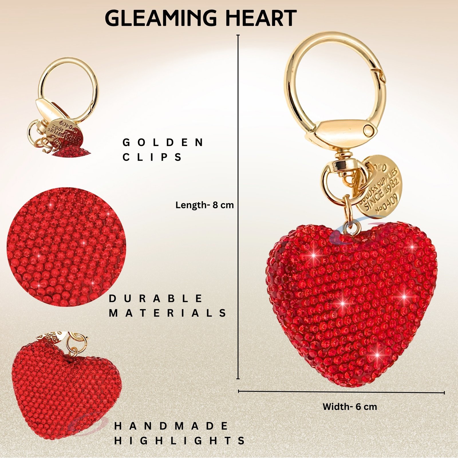 The heart is meticulously embellished with **radiant red rhinestones**, creating a dazzling, eye-catching effect that adds glamour and style to your accessories.