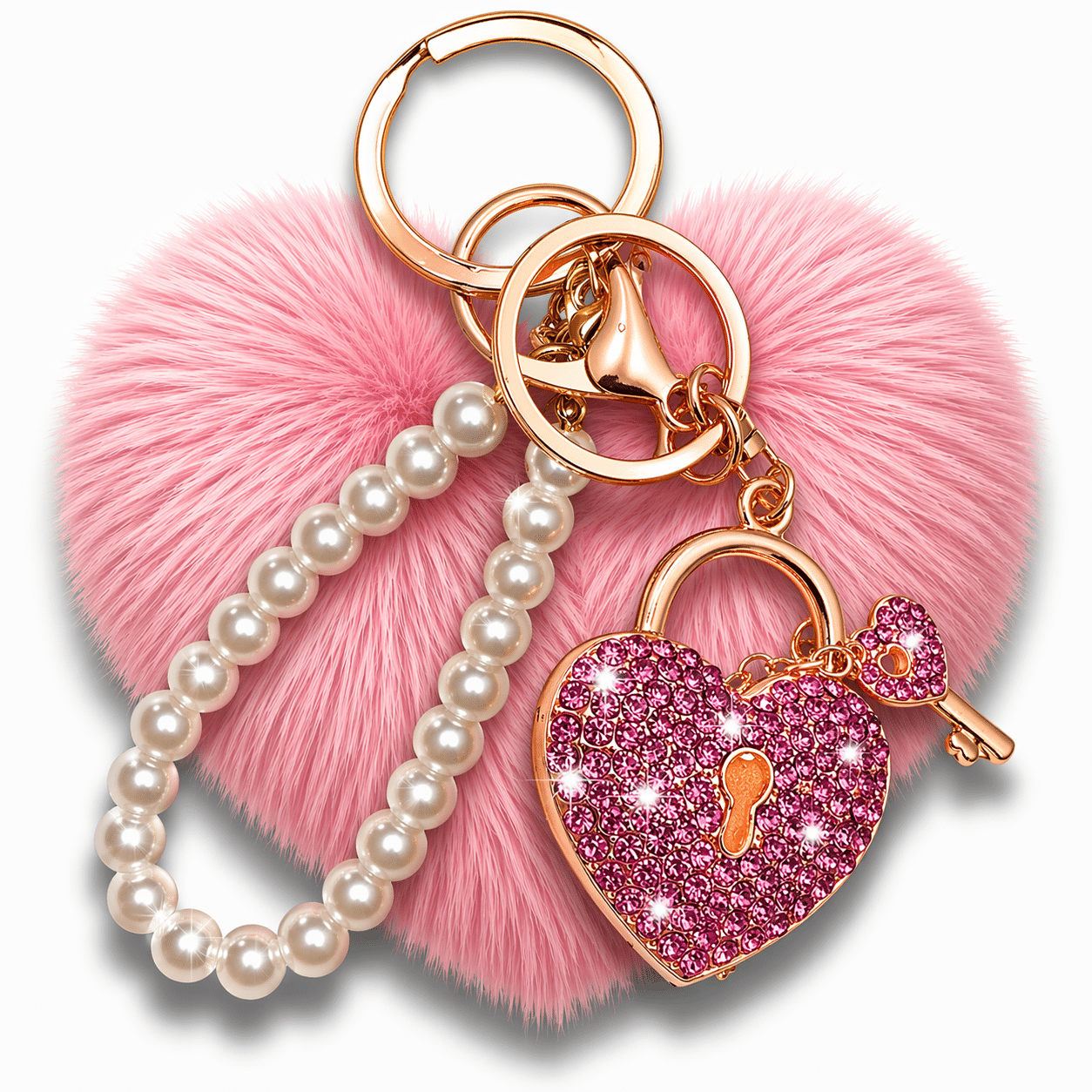 This elegant charm adds a touch of love and luxury to your daily essentials. It's a perfect blend of fluffy comfort and glittering style, ideal for anyone looking to personalize their bags, purses, wallets, or keys.