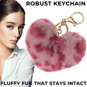 Make your everyday accessories look elegant and adorable with the iAccessories Fluffy Faux Fur Pom Pom Heart Key Ring – Rose Lepo.