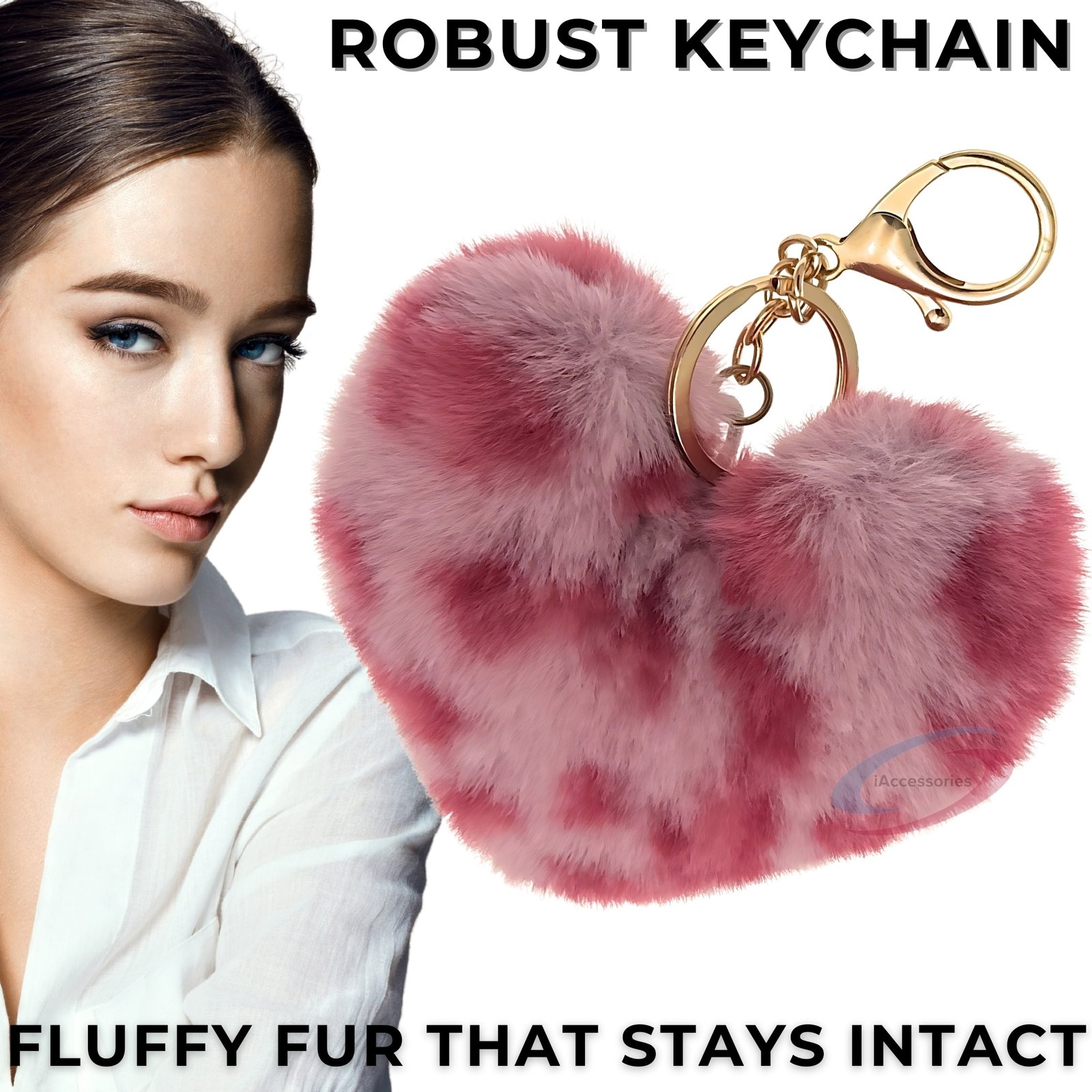 Attribute Details Brand iAccessories Color Rose Lepo Material Faux Fur + Alloy Metal Shape Heart Pom Pom Ideal For Girls, Teens, Women Use Cases Bags · Keys · Wallets · Luggage · Backpacks Package Includes 1 × Heart Pom Pom Key Ring