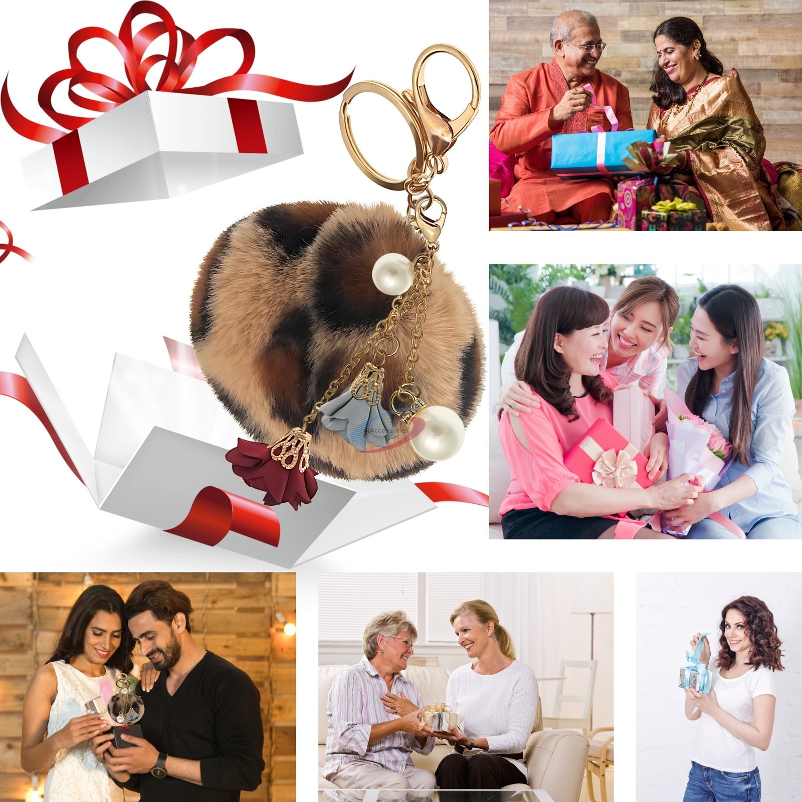 This faux fur pom pom keychain makes a delightful gift for girls of all ages. Whether it's for a birthday, holiday, or just because, this versatile accessory is sure to bring a smile to anyone's face.