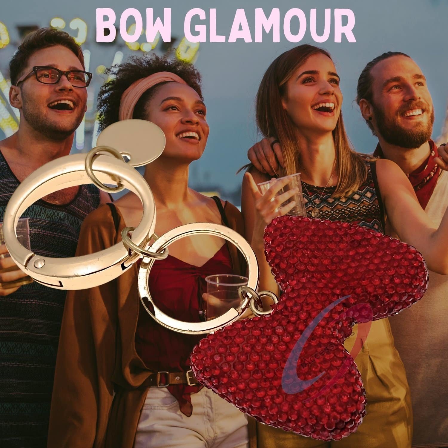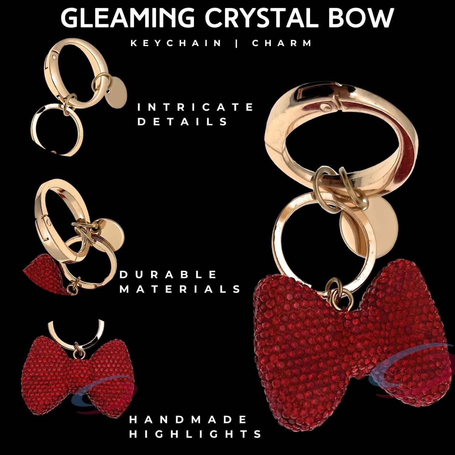 Add a touch of **elegance and charm** to your everyday essentials with the **iAccessories Bling Crystal Bow Keychain Charm in Red**.