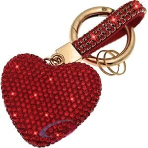 Sparkling Bling Crystal Heart Keychain Charm for Stylish Accessories – Red