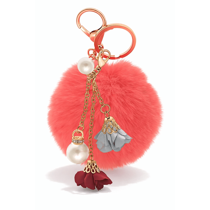 Enhance your everyday essentials with the **iAccessories Coral Faux Fur Pom Pom Ball Keychain**.